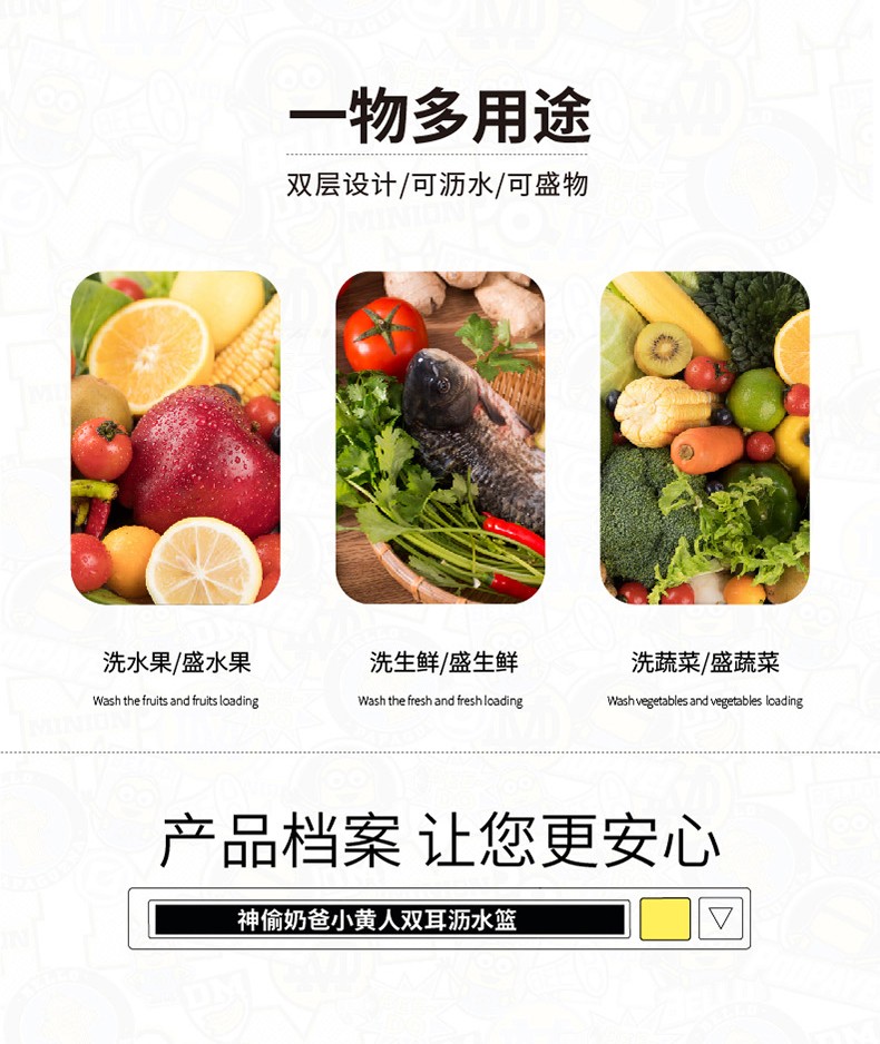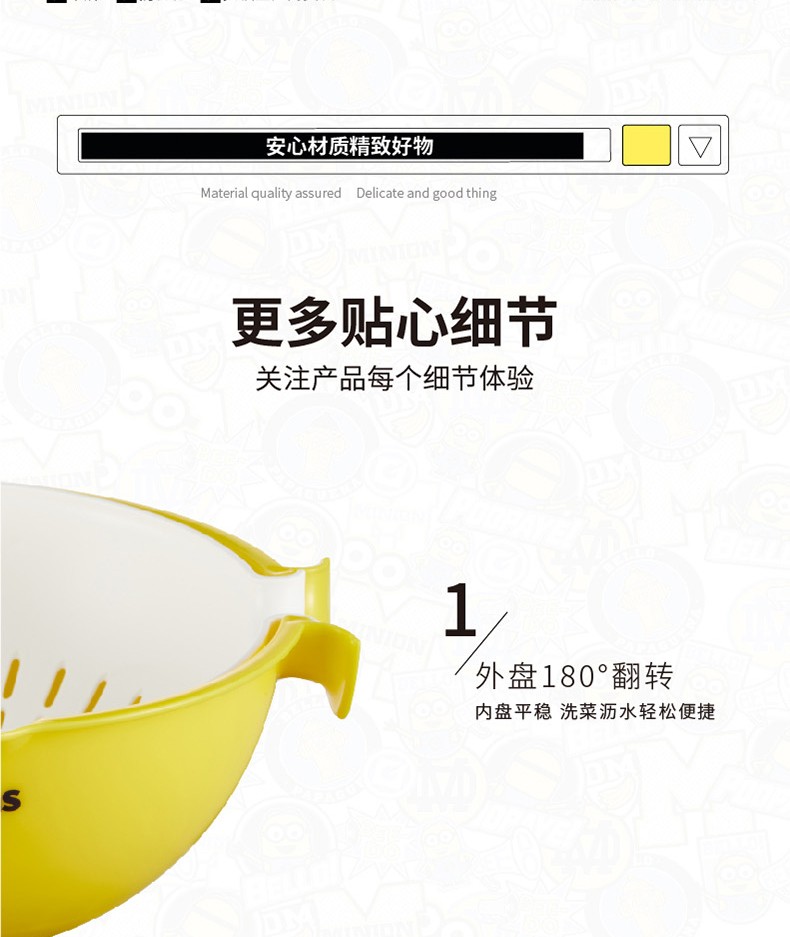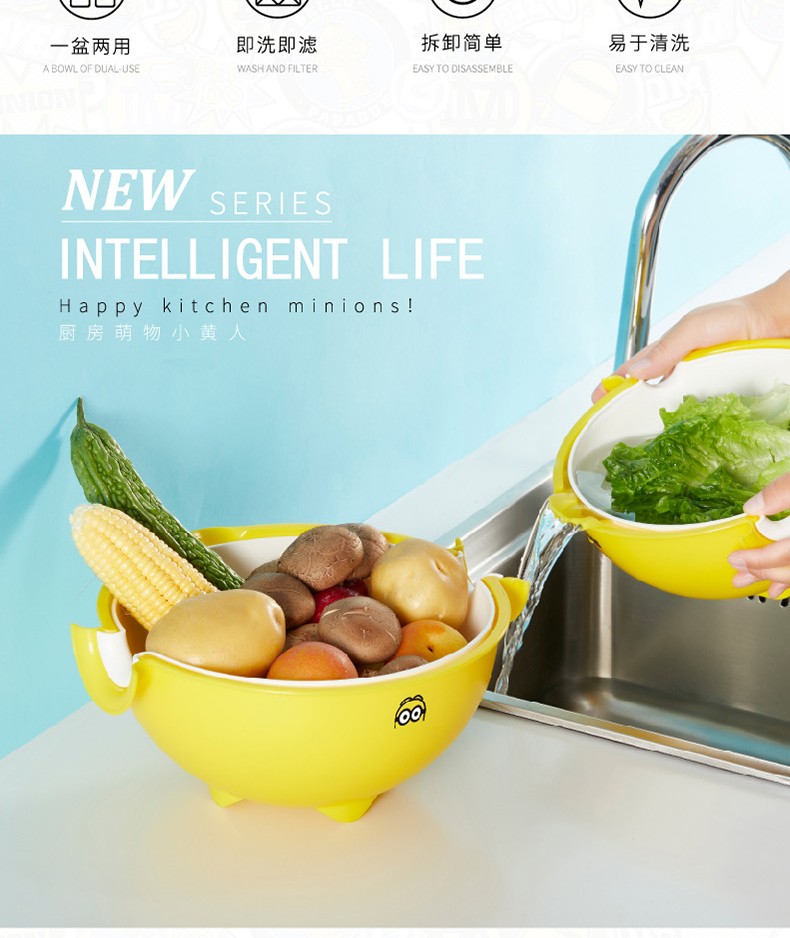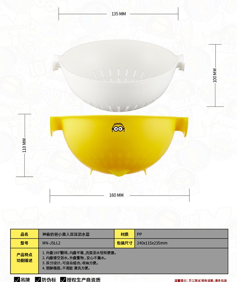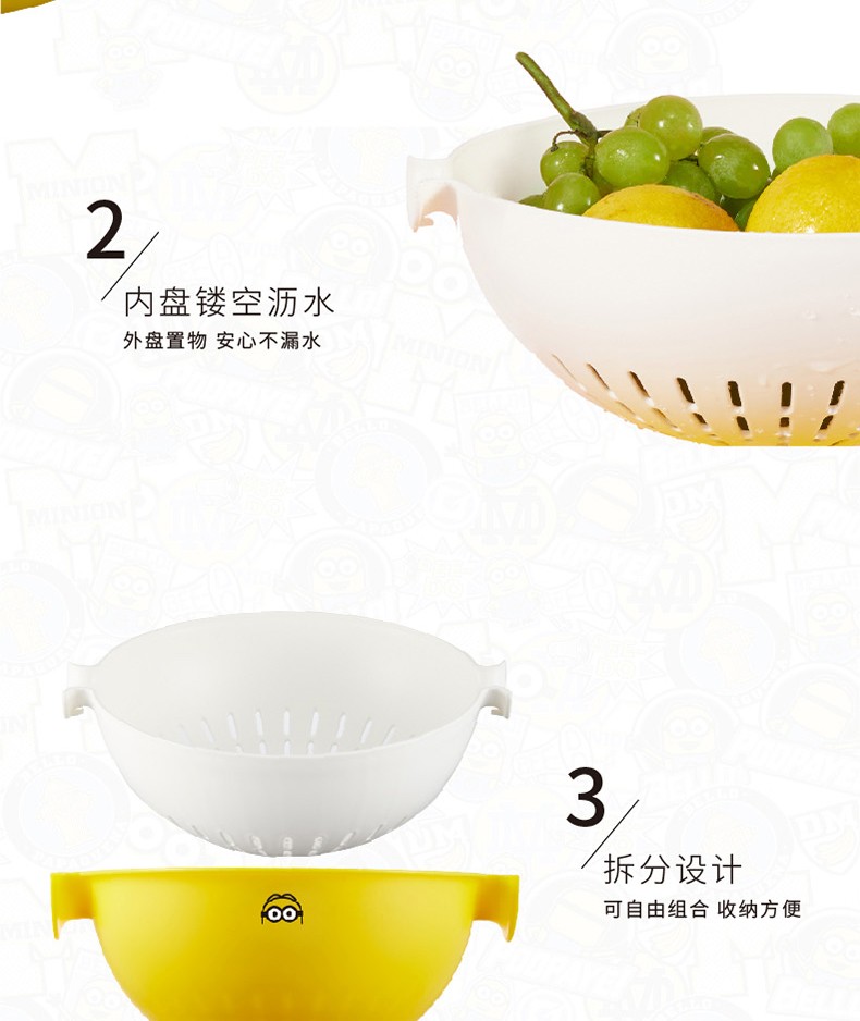 商品名称:小黄人 一盆两用双耳沥水篮即洗即滤盛物篮 银行送客户小礼品