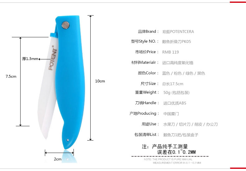 商品名称:创意鲸鱼折叠陶瓷刀 便携水果刀 健康环保刀具