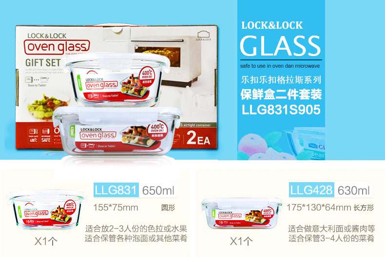 商品名称:乐扣乐扣(Lock&Lock) 玻璃保鲜盒 微波耐热白领工作饭盒 LLG831S905