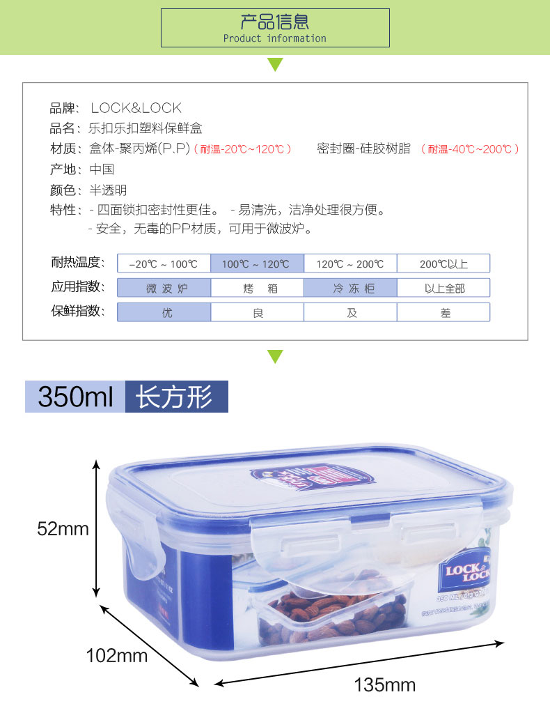 商品名称:乐扣乐扣(Lock&Lock)塑料保鲜盒 微波炉饭盒 便当盒 密封盒收纳盒350ML HPL806 贴心小礼品 员工礼品