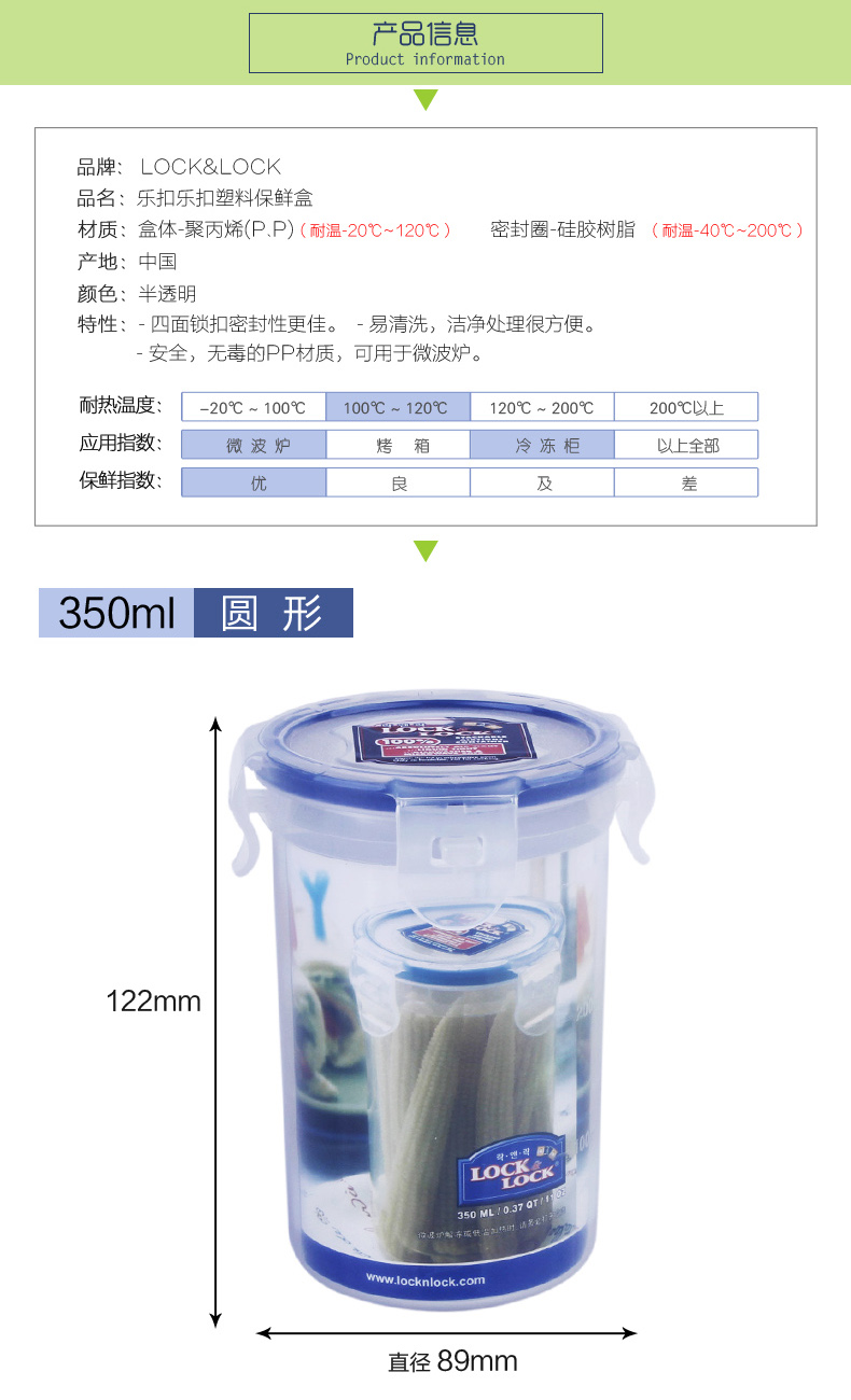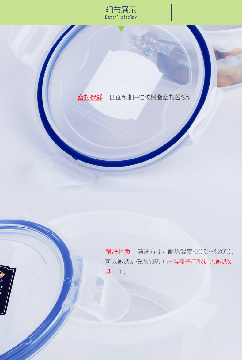 商品名称:乐扣乐扣(Lock&Lock)圆形塑料保鲜盒 微波炉饭盒 便当盒 密封盒350ML HPL931D 活动小礼品