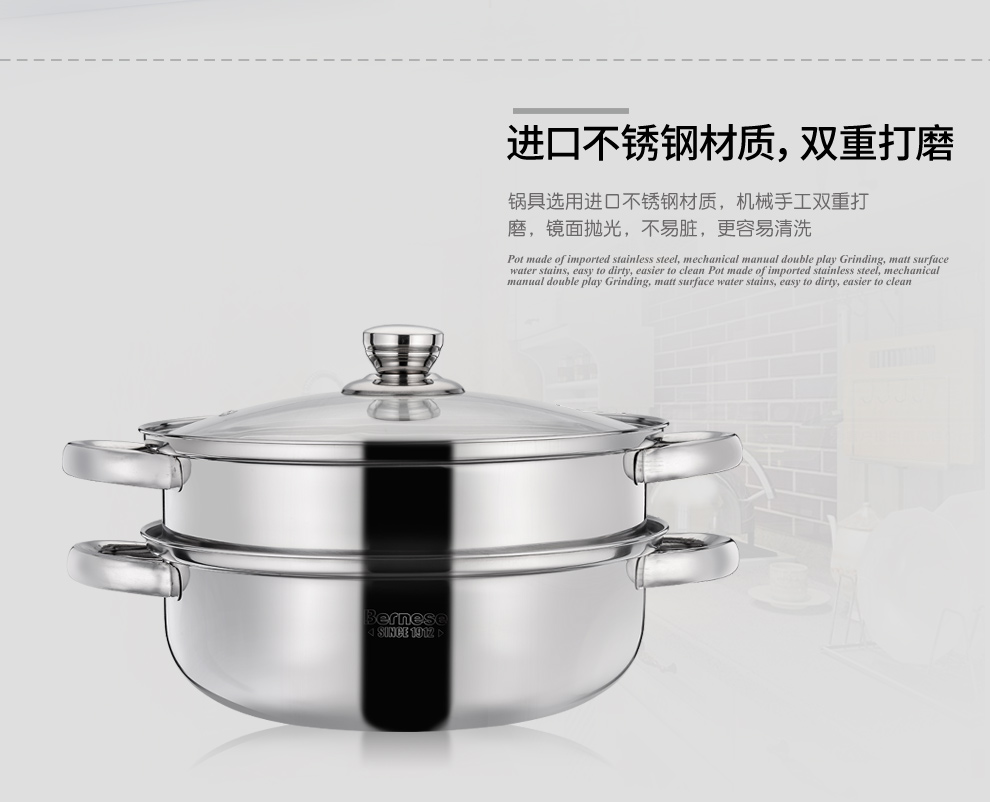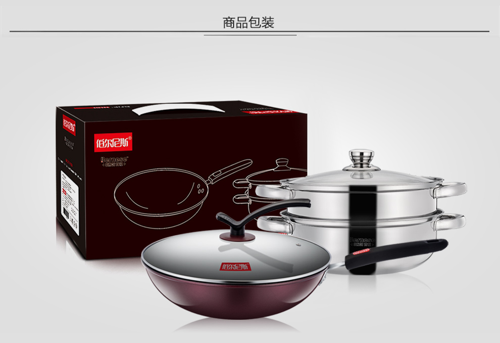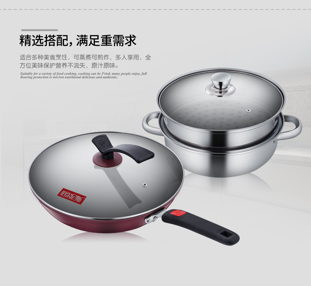 商品名称:伯尔尼斯 金钢两件套不粘锅炒锅不锈钢蒸锅 比赛奖品