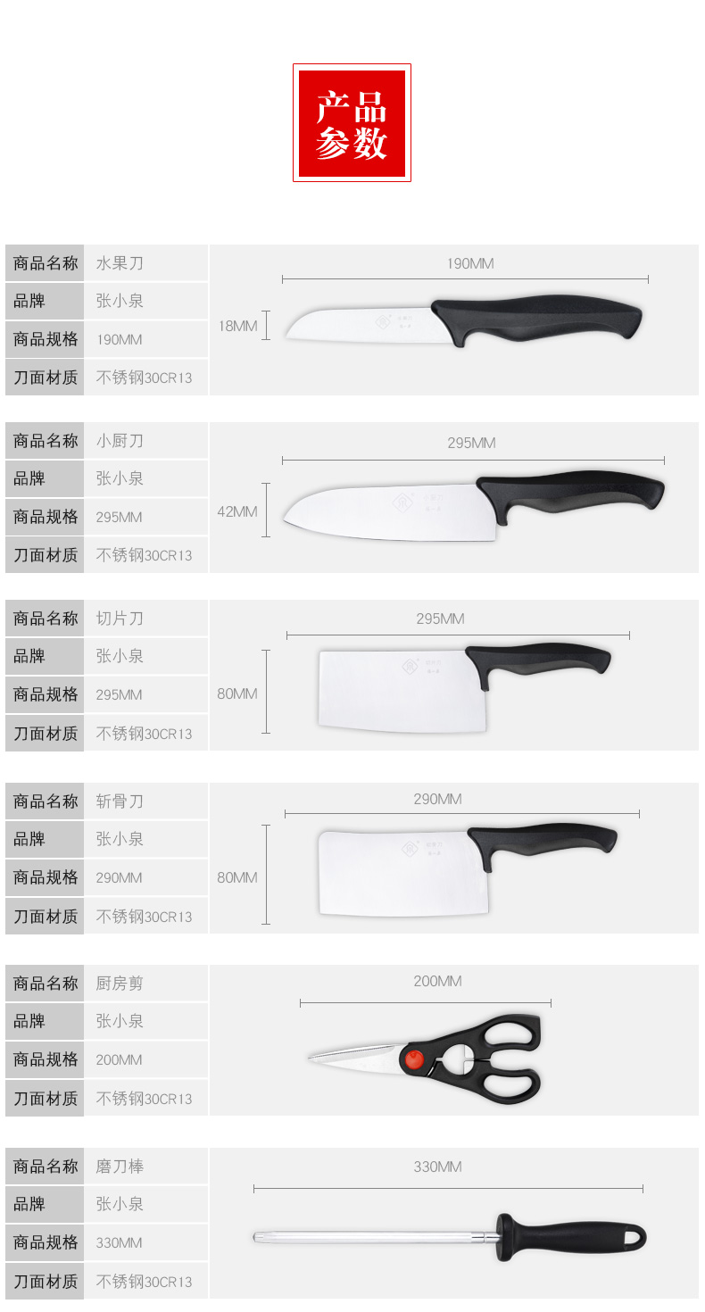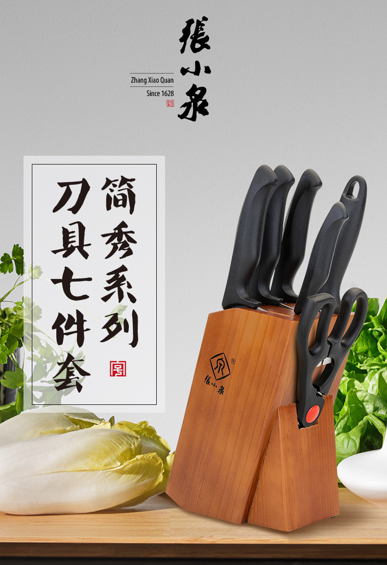 商品名称:张小泉 简秀系列不锈钢刀具家用七件套桃木实木刀座 活动高端小礼品