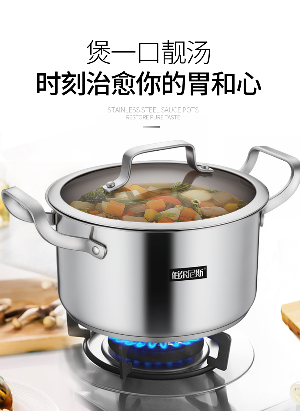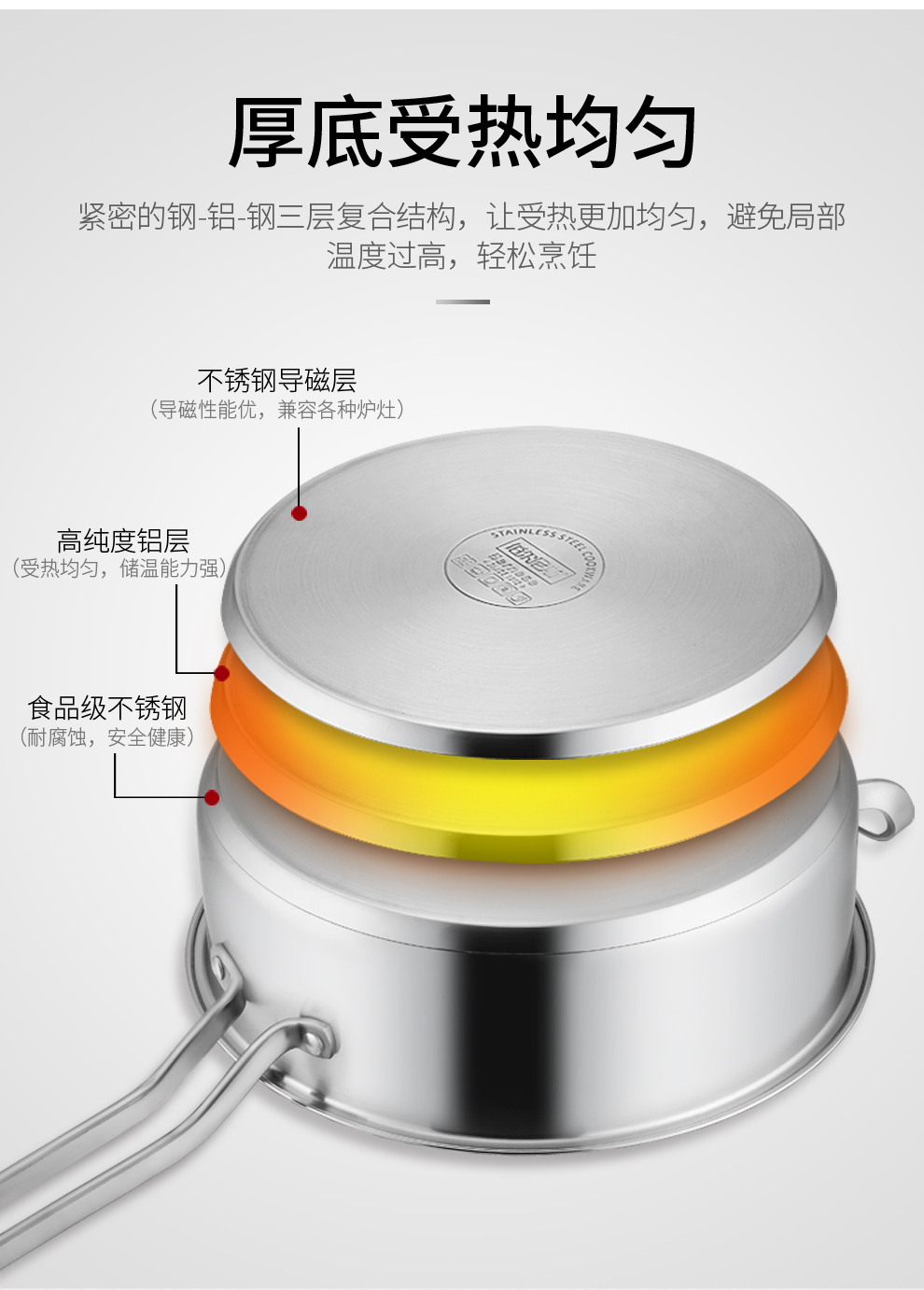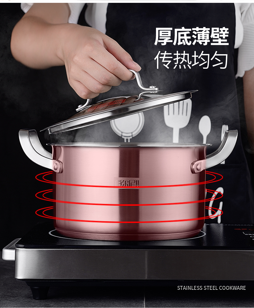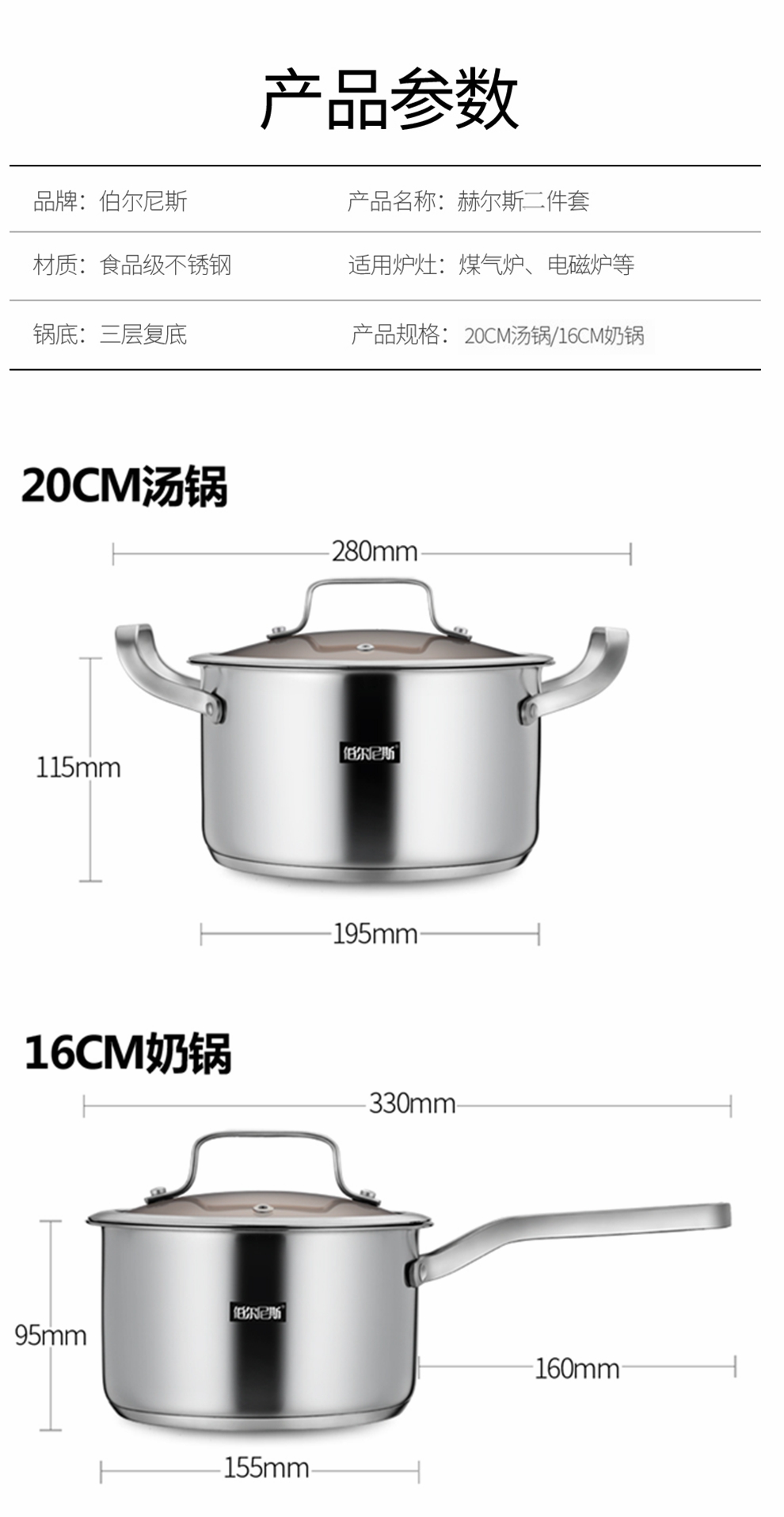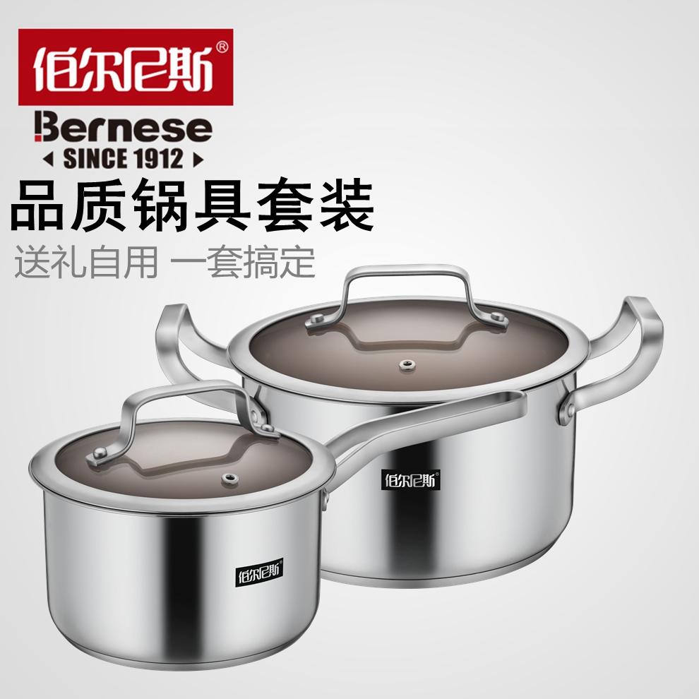 商品名称:伯尔尼斯 三层复底加厚汤锅奶锅套装 赫尔斯二件套