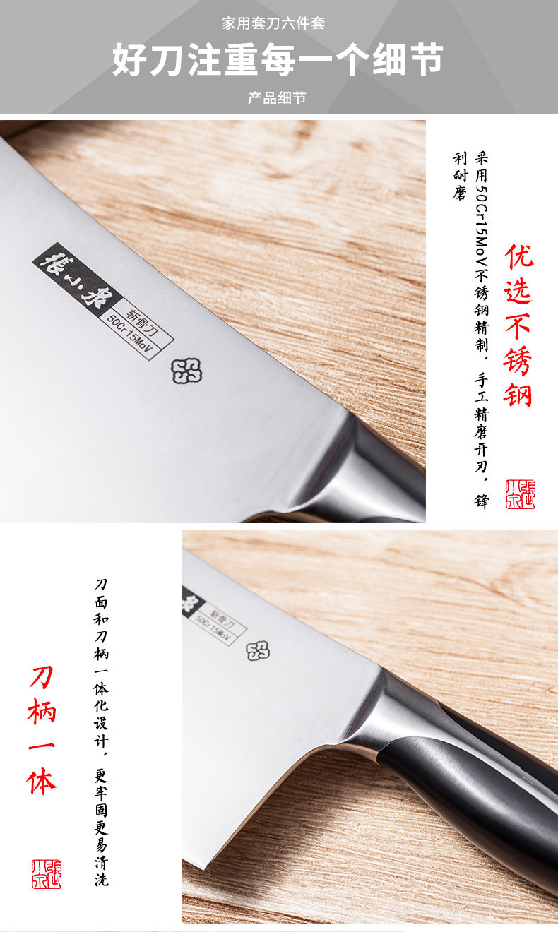 商品名称:张小泉 启航系列不锈钢刀具六件套装 厨房刀具套装 房地产抽奖奖品