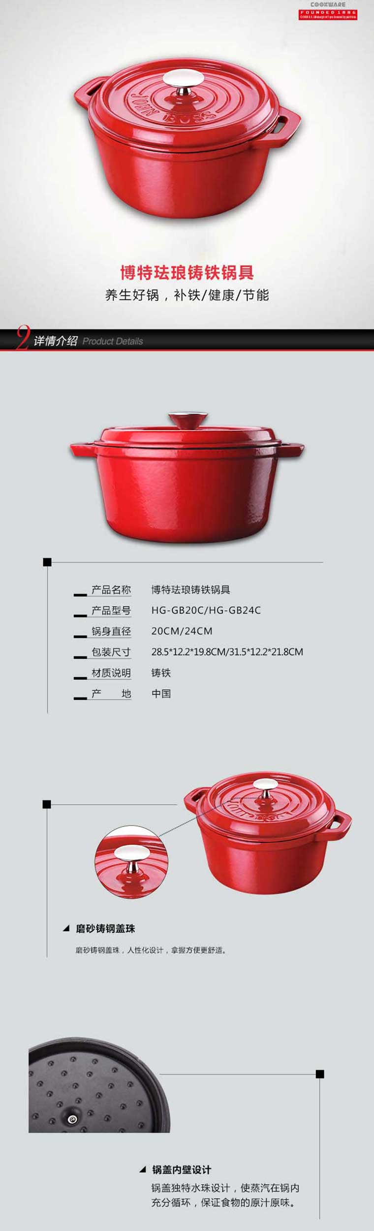 商品名称:JOHN BOSS(英国)珐琅铸铁锅 24CM