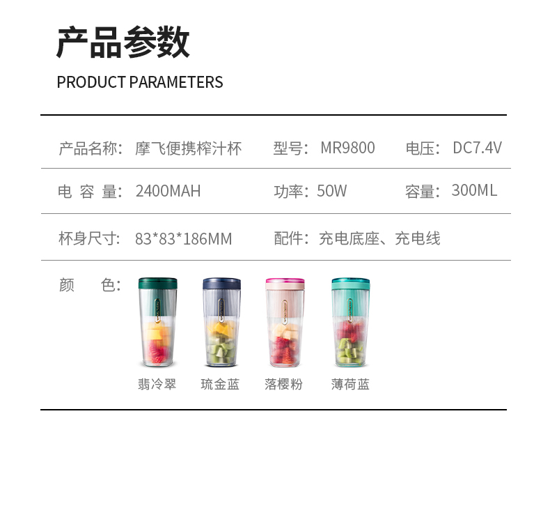 商品名称:摩飞(Morphyrichards)无线感应充电便携榨汁杯 现榨鲜喝榨汁杯 活动礼品