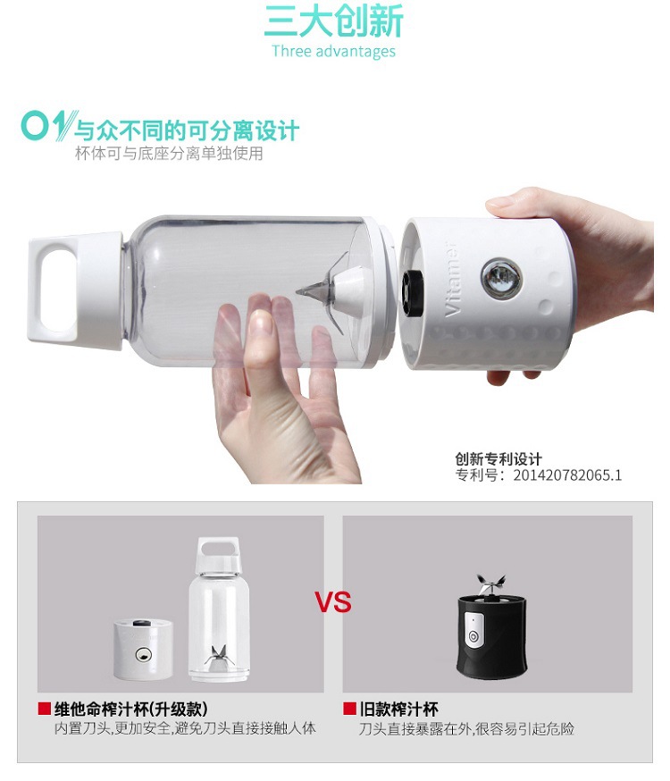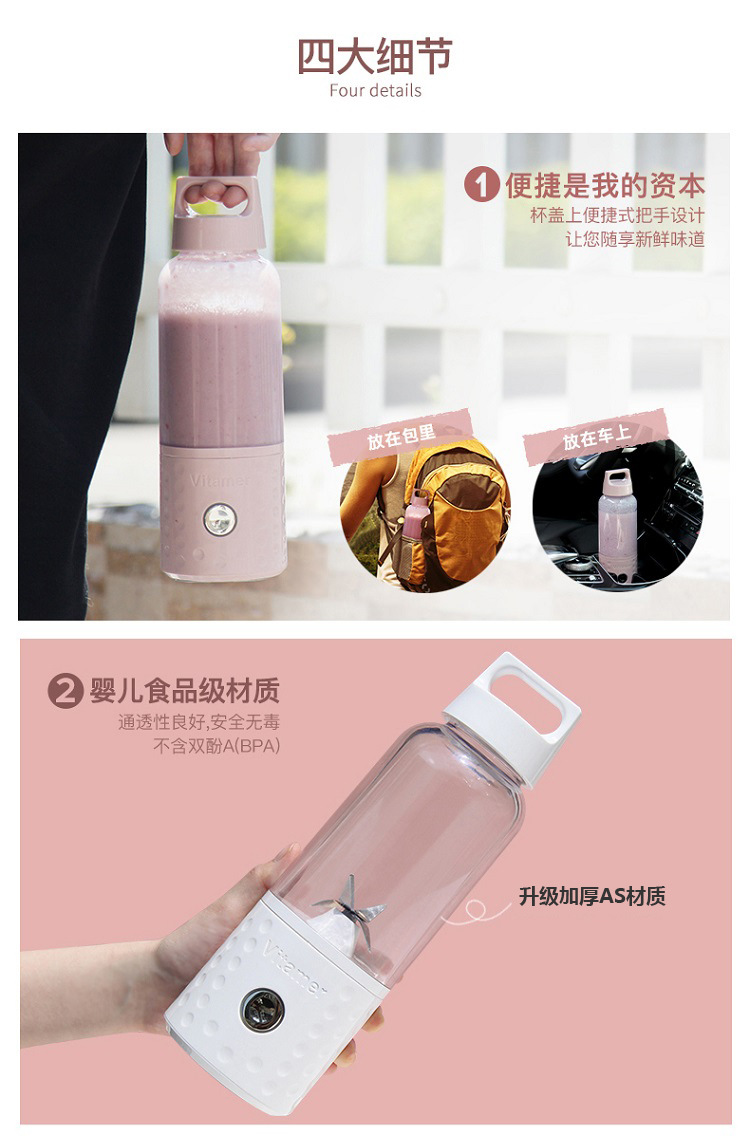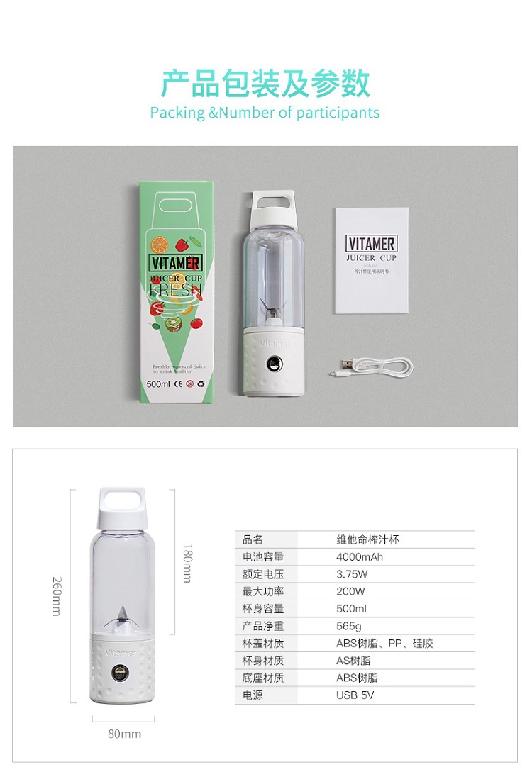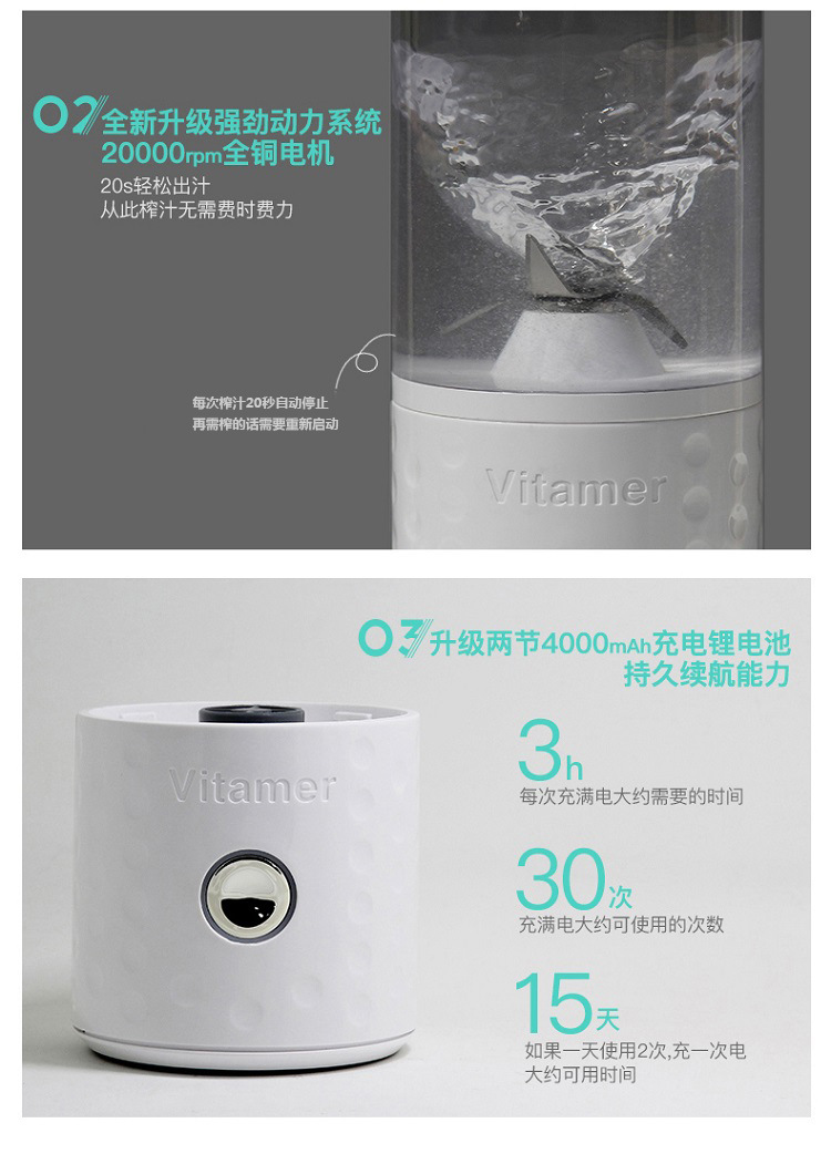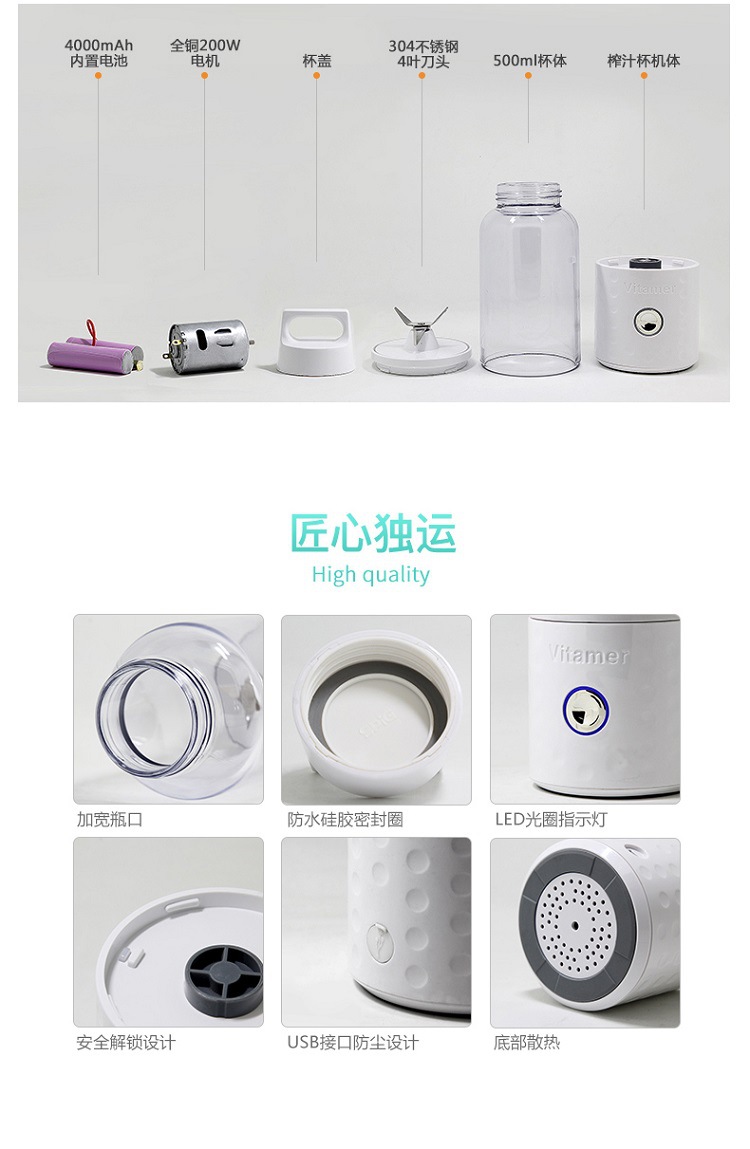 商品名称:【VITAMER】充电果汁杯500ml维他命榨汁杯可拆卸搅拌 公司年会送什么礼物
