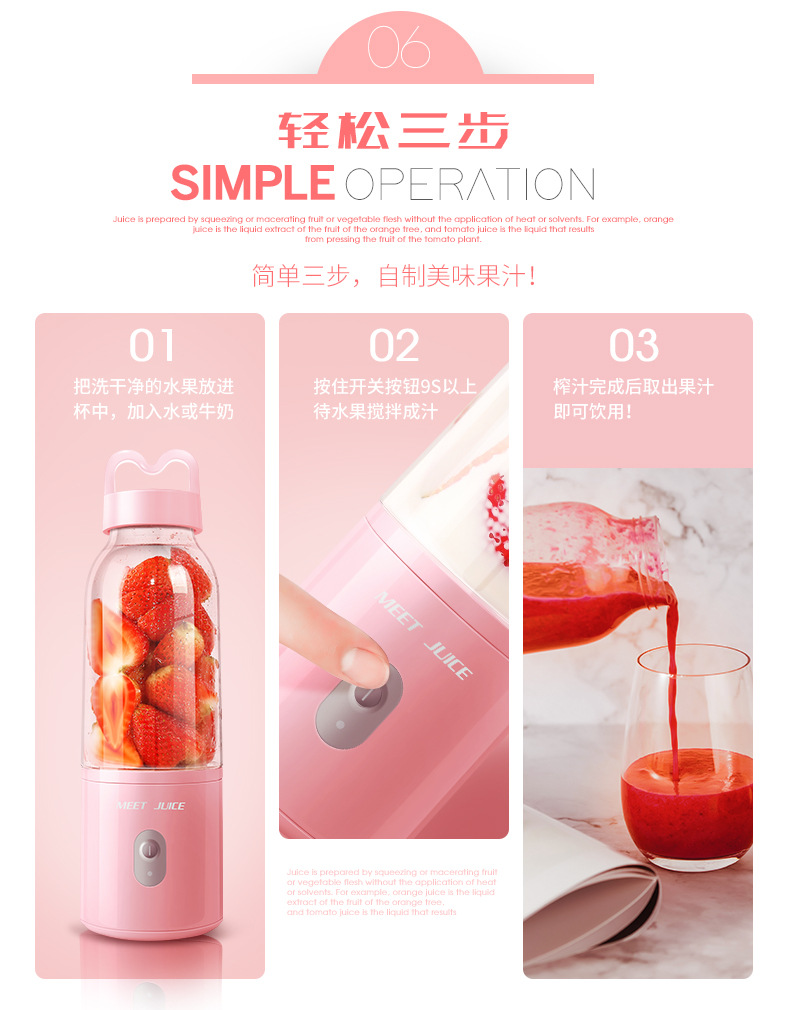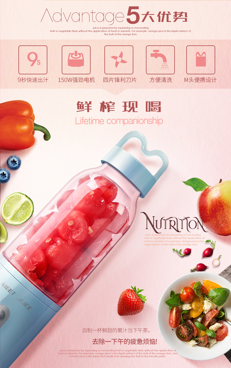商品名称:迷你小巧电动鲜榨果汁机 插电款榨汁杯 三八妇女节送员工礼物