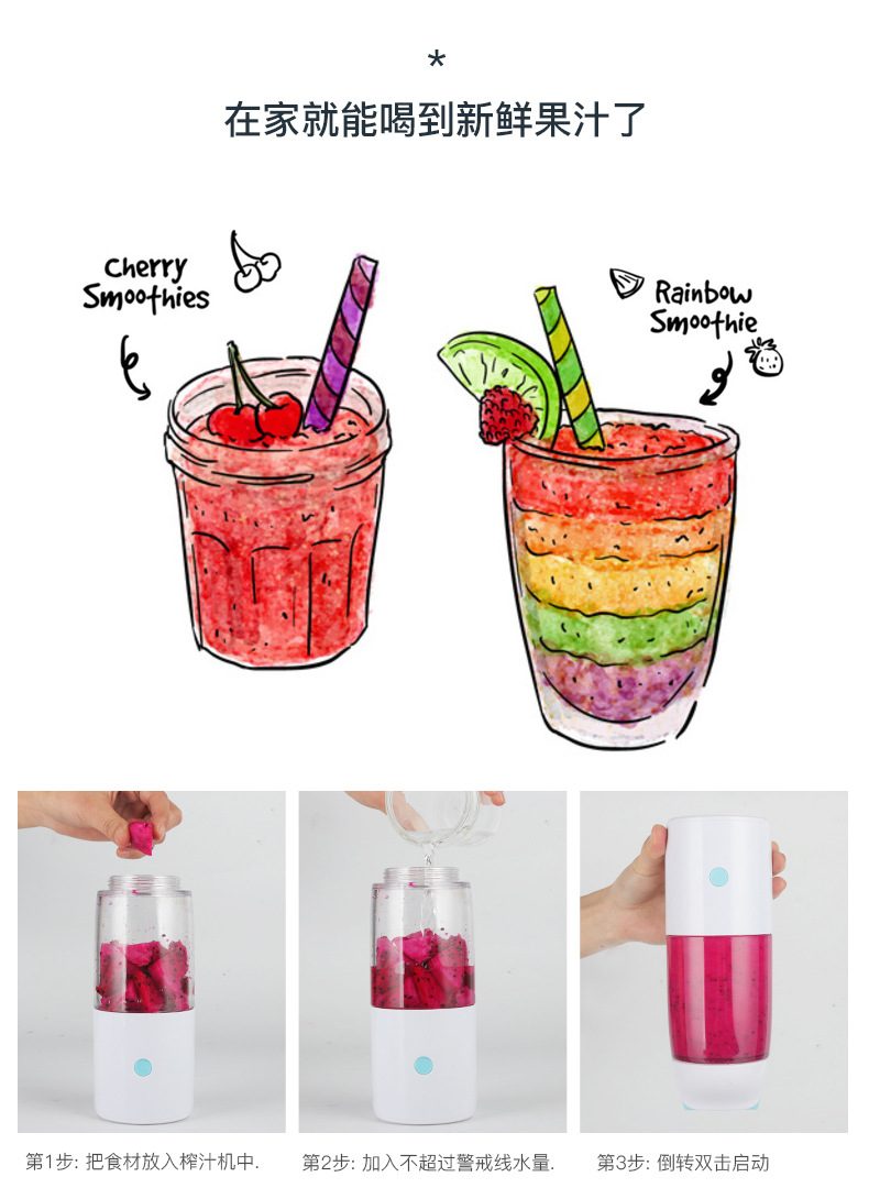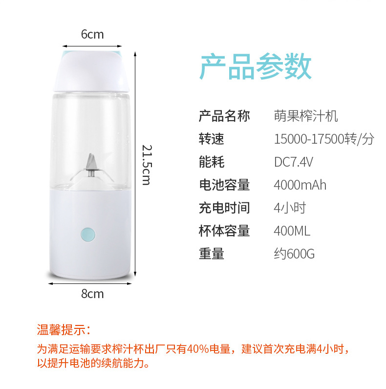 商品名称:萌果榨汁杯 迷你随身电动果汁杯带随手杯底 送客户的礼品推荐