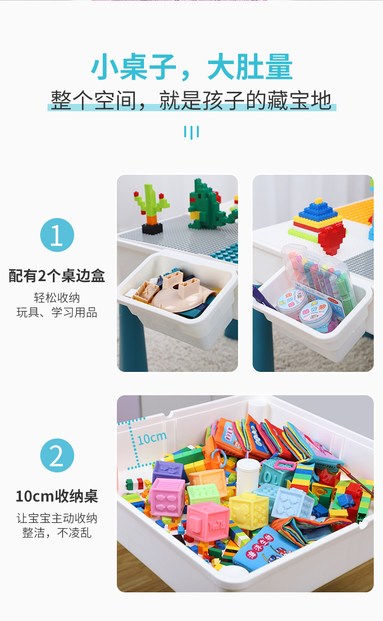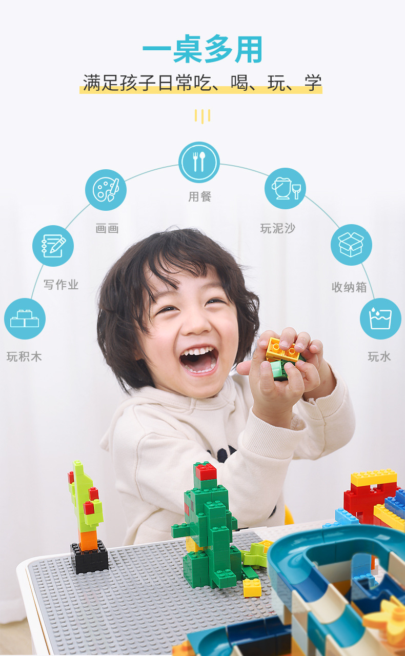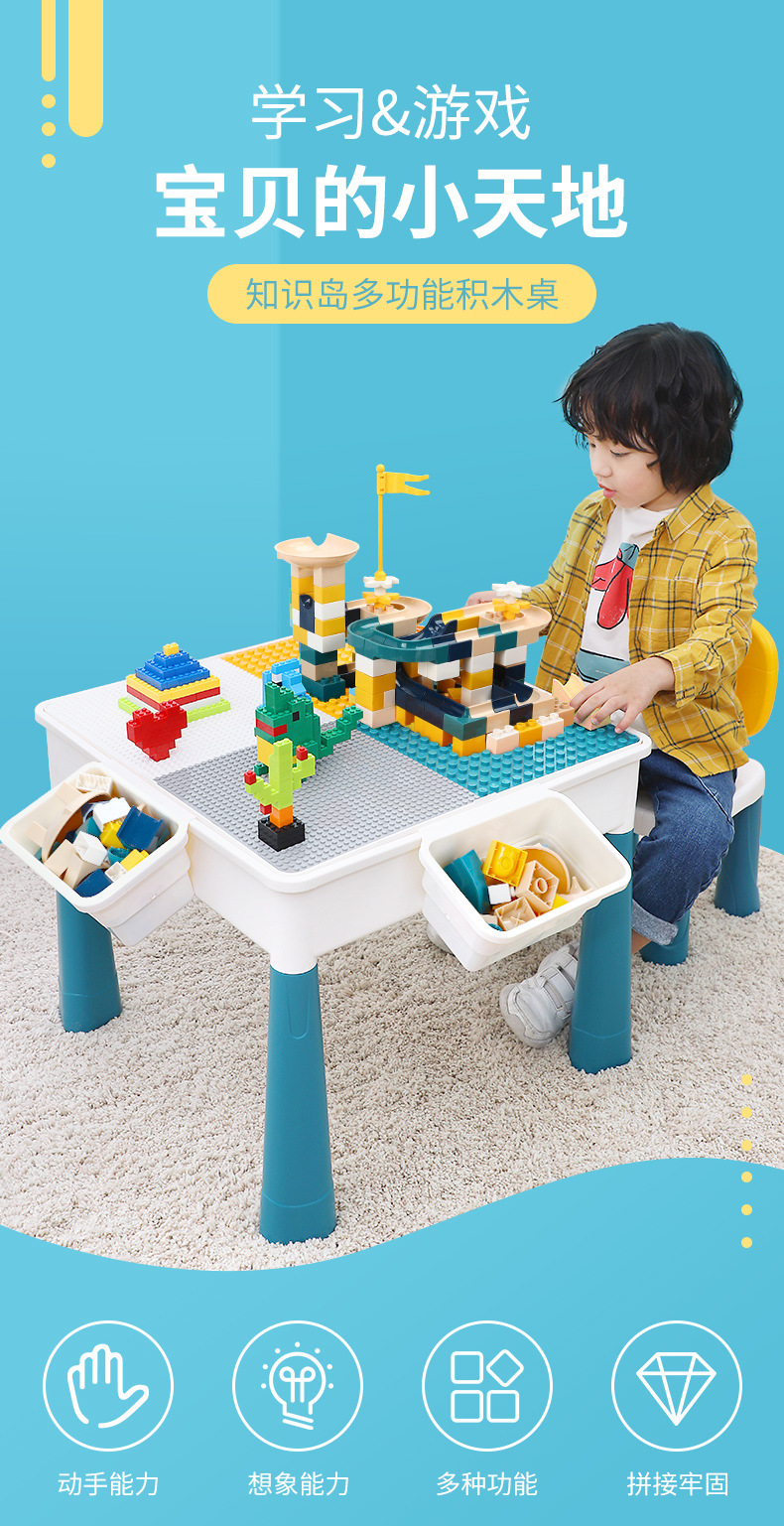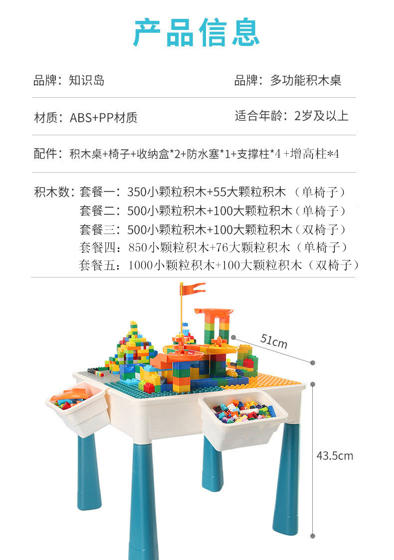 商品名称:知识岛多功能儿童积木桌 孩子DIY益智大颗粒游戏积木桌 母婴展礼品