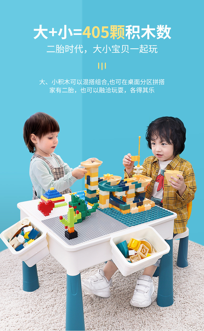 知识岛多功能儿童积木桌 孩子DIY益智大颗粒游戏积木桌 母婴展礼品