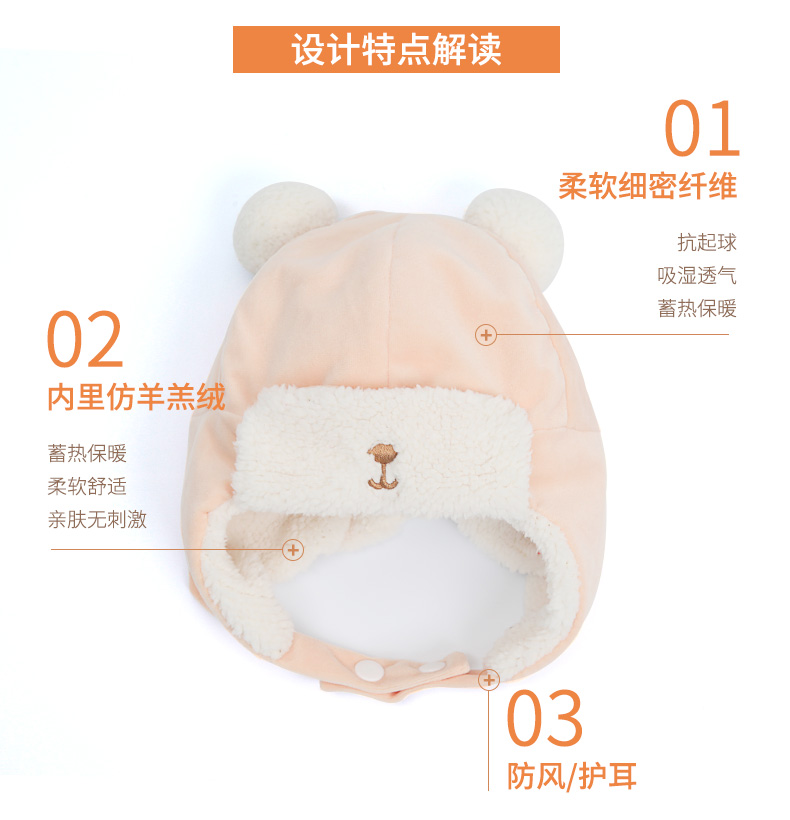 商品名称:卡通小狗仿羊羔绒护耳防风婴幼儿童雷锋帽子--浅黄色
