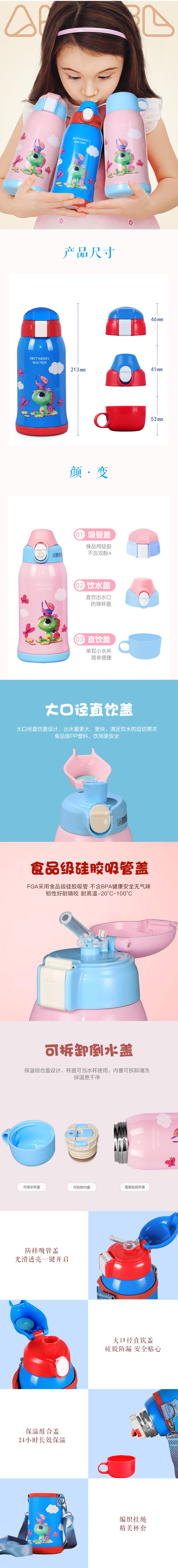 商品名称:儿童多用真空保温壶 大容量外出便携挂绳杯套保温杯 儿童礼品