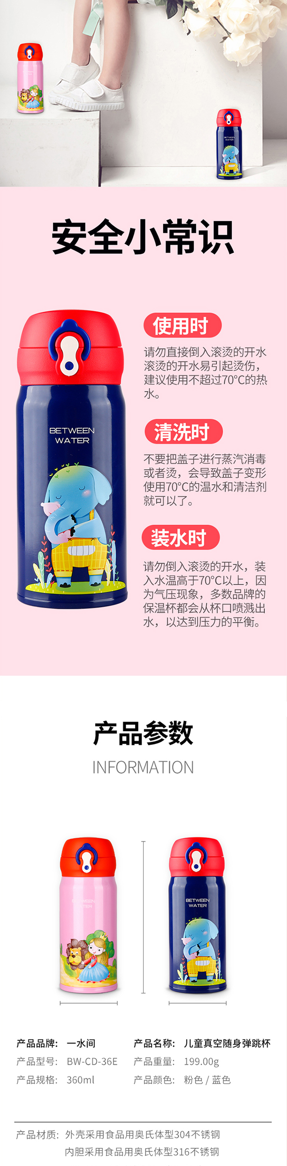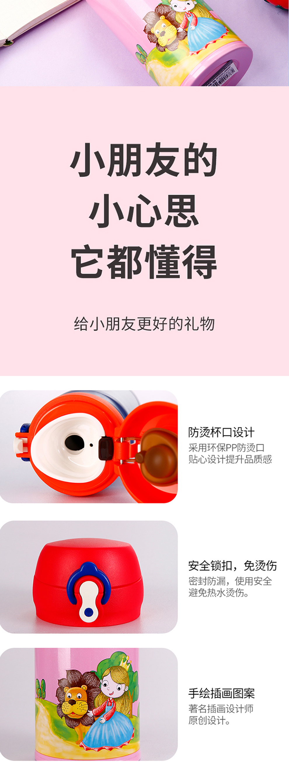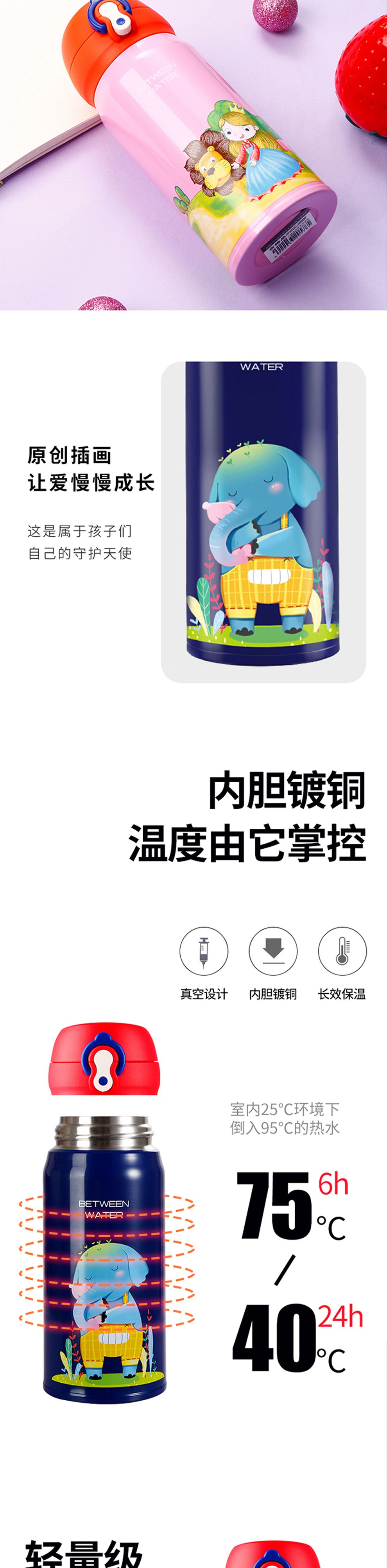 商品名称:儿童真空随身弹跳保温杯 童趣色彩原创插画一键开启保温杯 儿童服饰活动赠品
