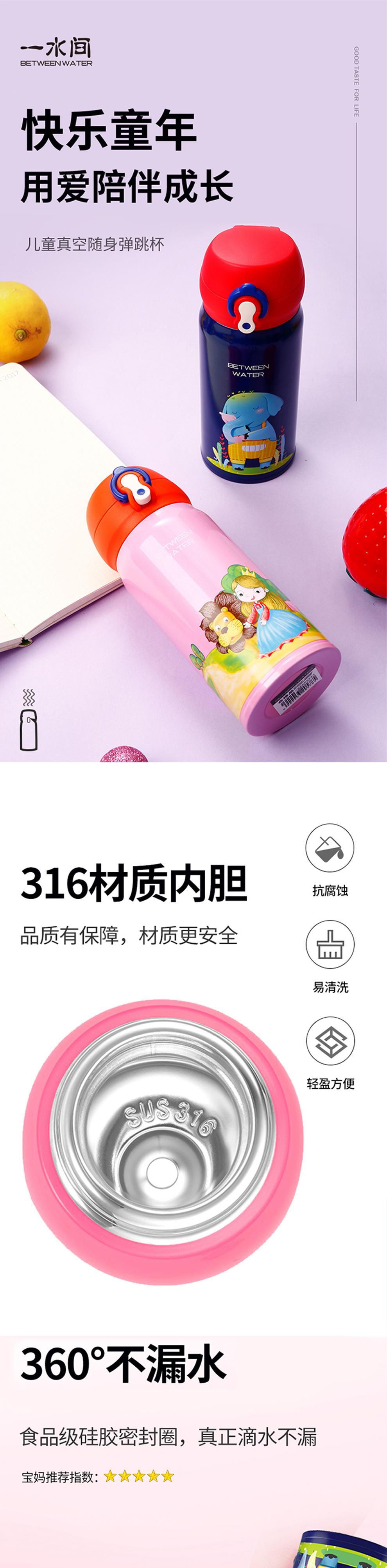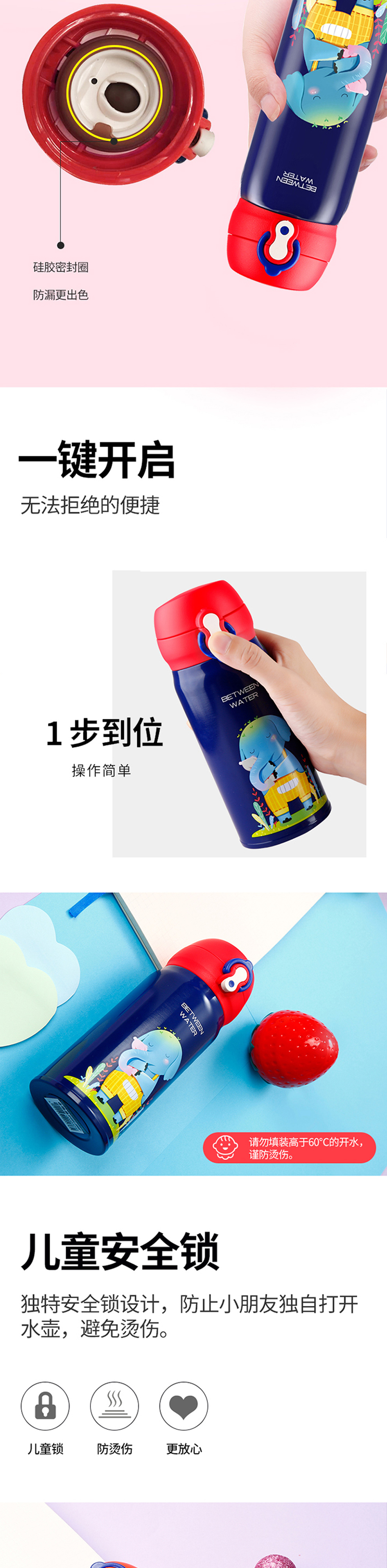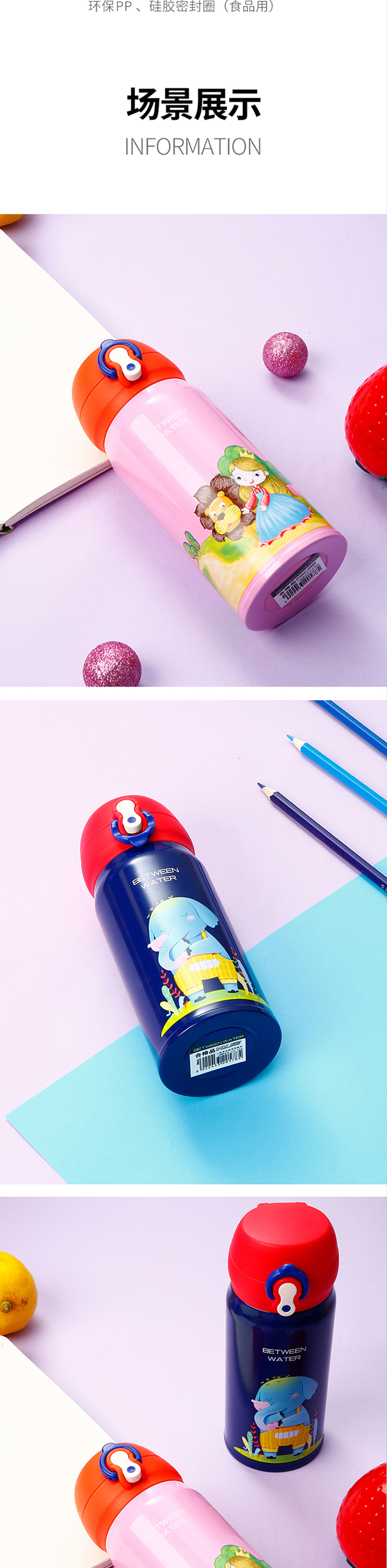 商品名称:儿童真空随身弹跳保温杯 童趣色彩原创插画一键开启保温杯 儿童服饰活动赠品