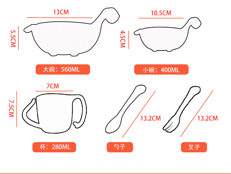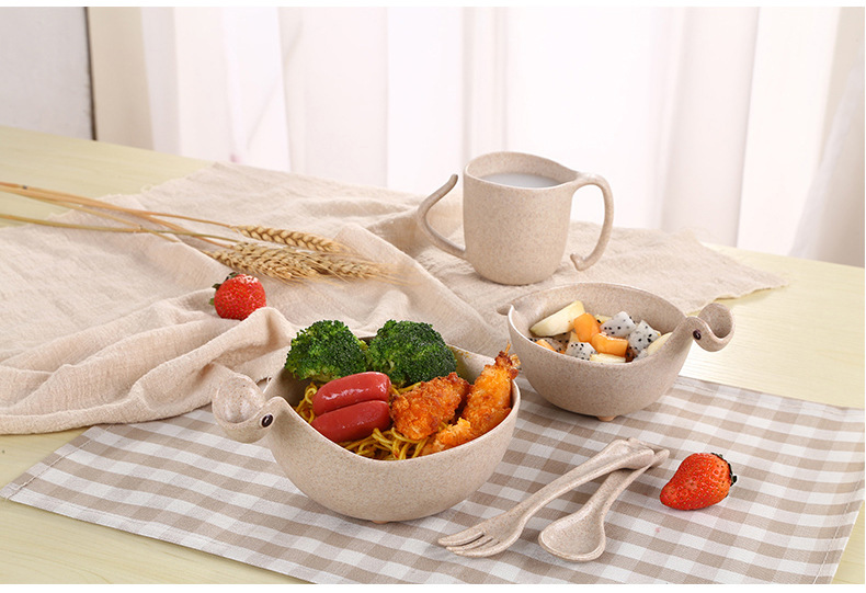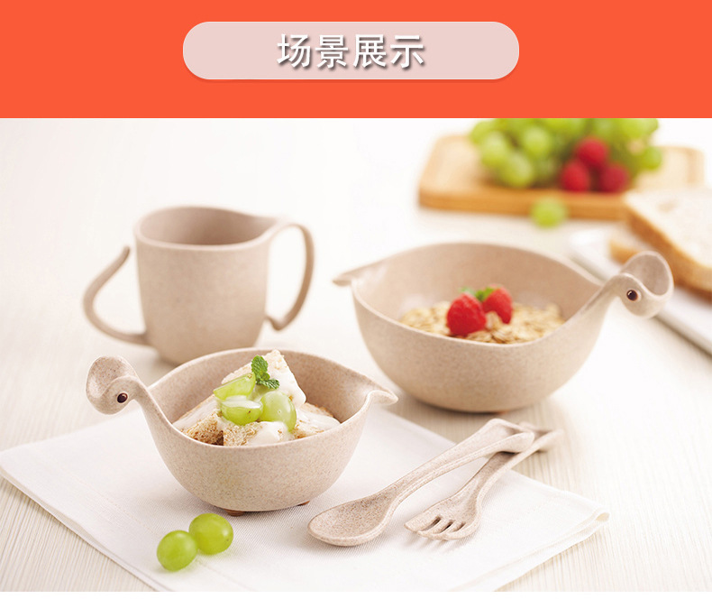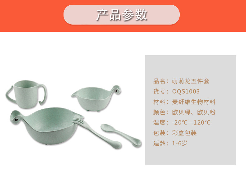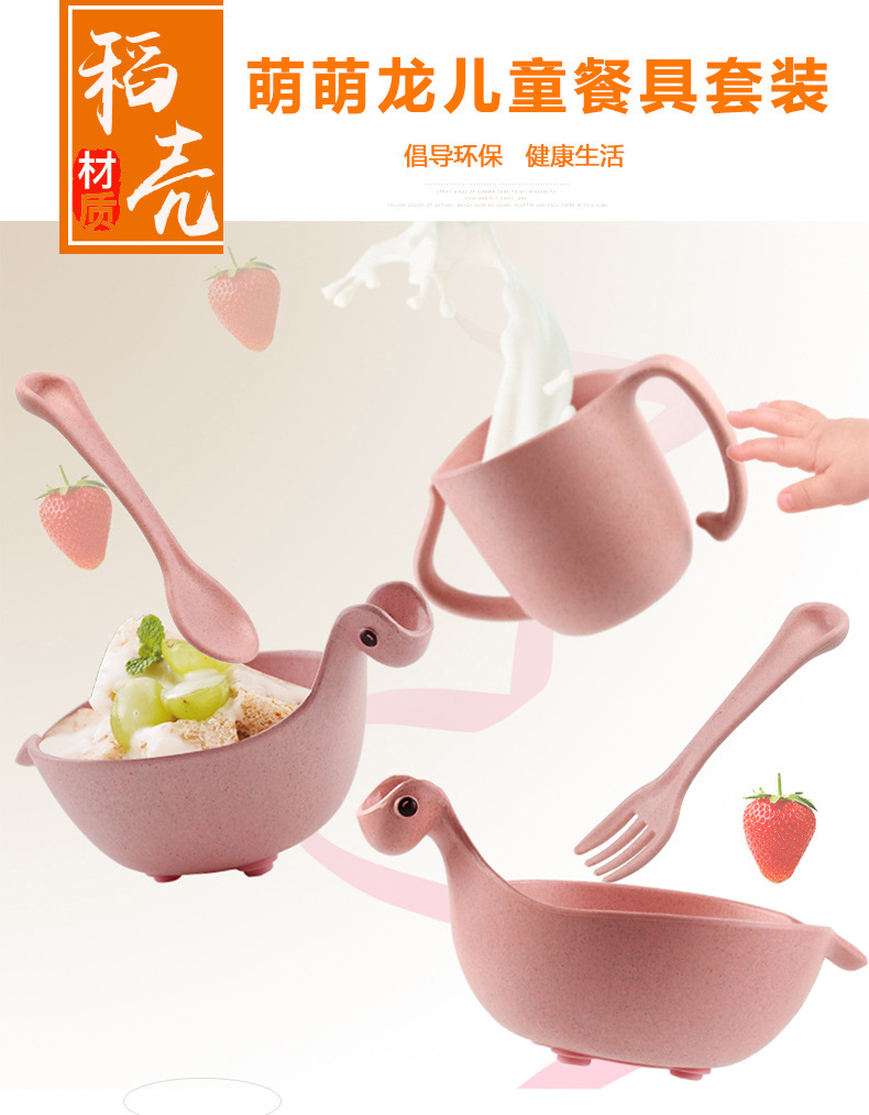 商品名称:环保健康稻壳材质 萌萌龙儿童餐具套装5件套 六一儿童节幼儿园礼品 儿童节比赛奖品