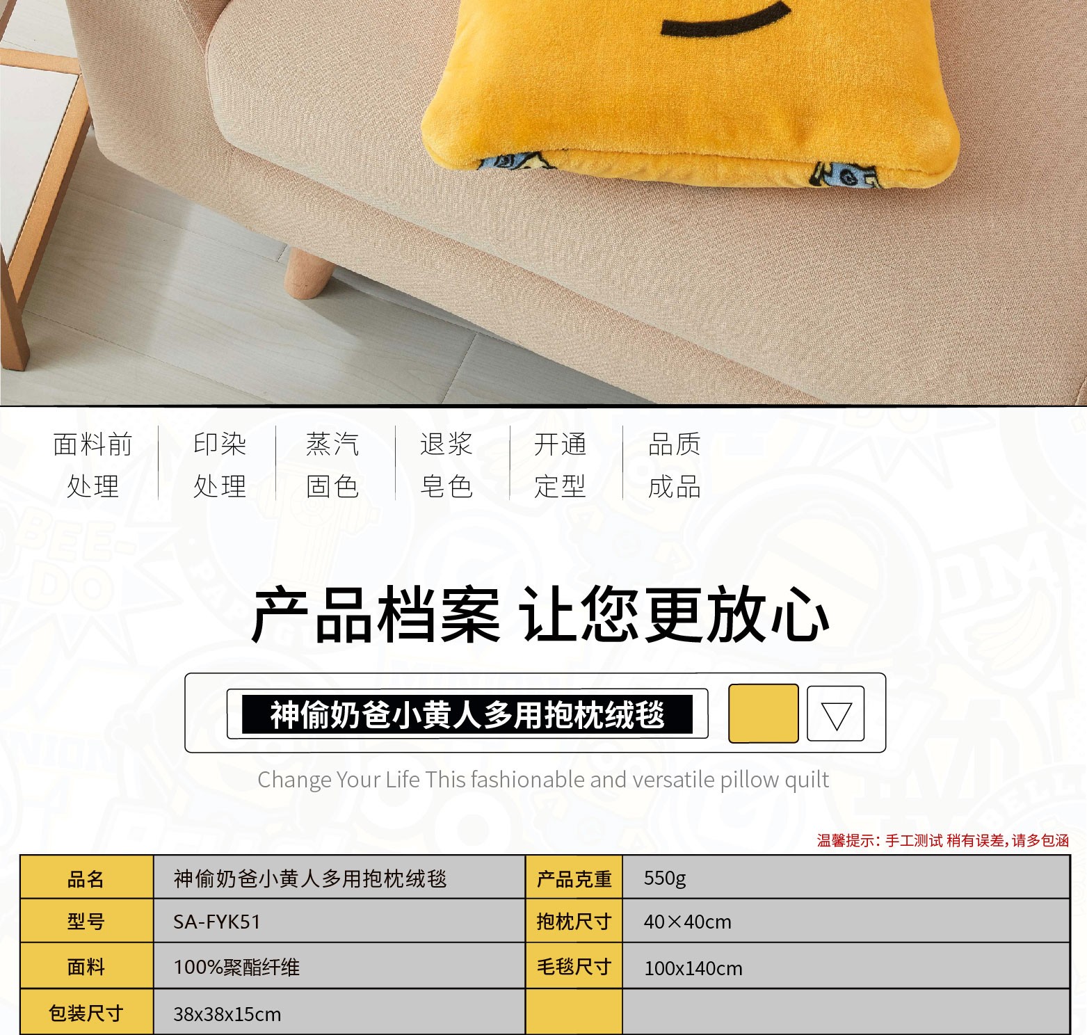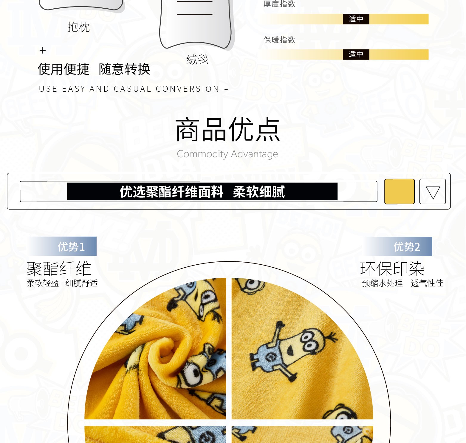 商品名称:小黄人 多用抱枕绒毯 办公午休抱枕毯子 员工活动有哪些小礼品