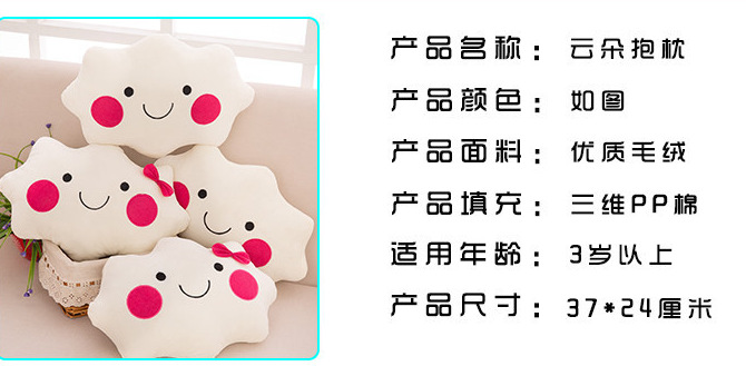 商品名称:云朵款超萌抱枕 汽车沙发靠垫 午休抱枕 活动奖品 小号