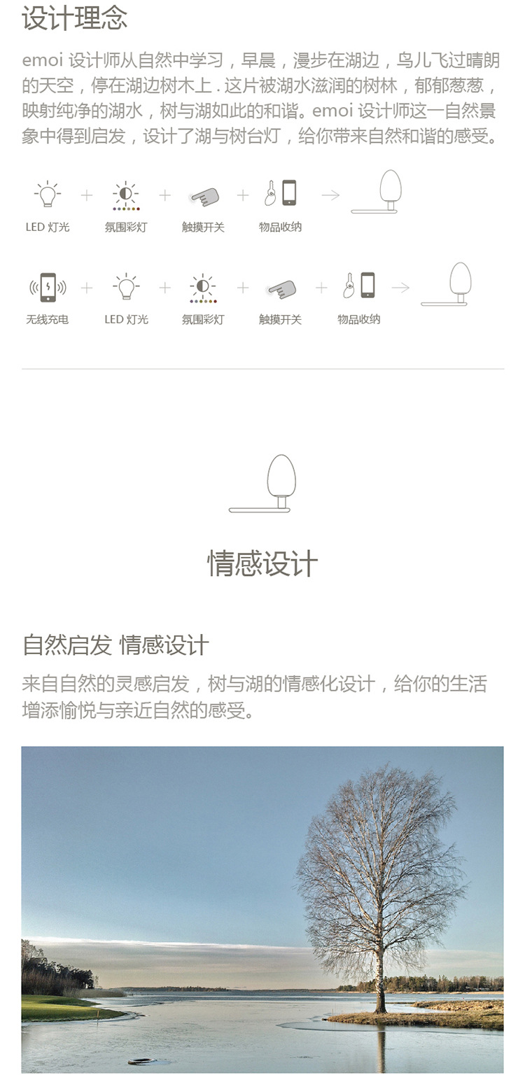 树与湖无线充电台灯物品收纳触摸开关氛围灯 企业年会活动奖品
