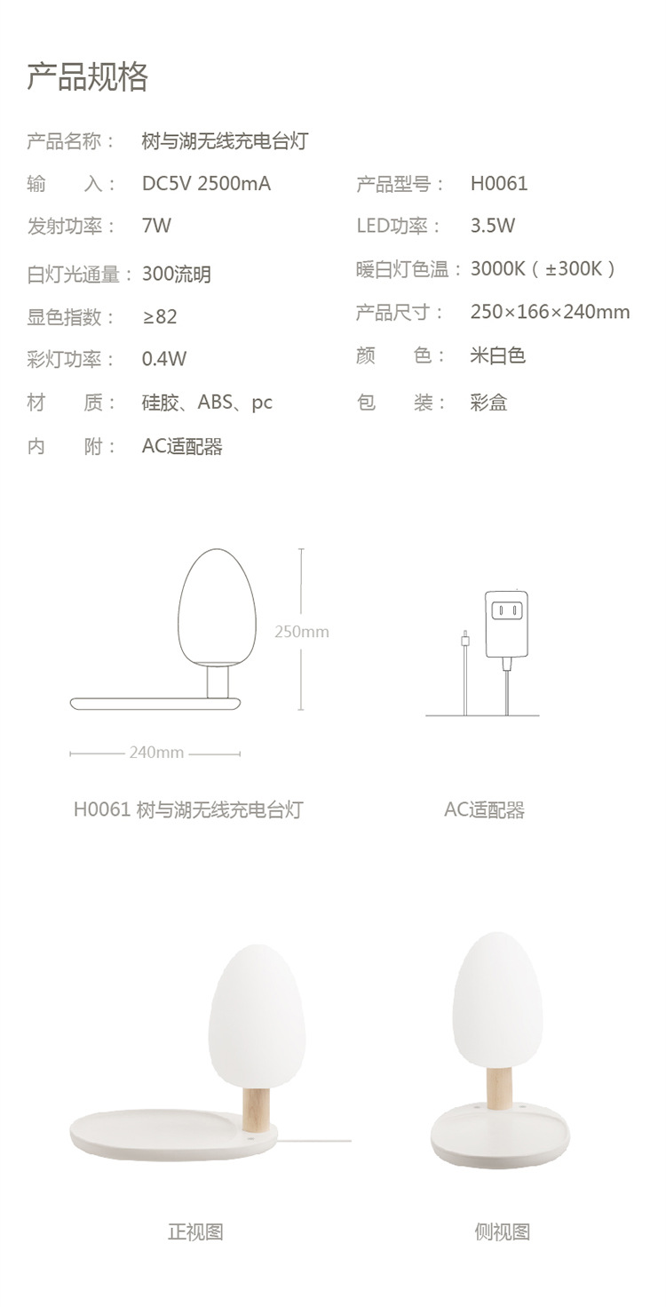 商品名称:树与湖无线充电台灯物品收纳触摸开关氛围灯 企业年会活动奖品