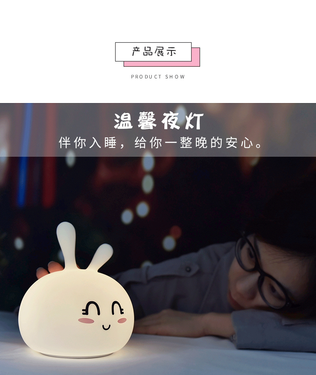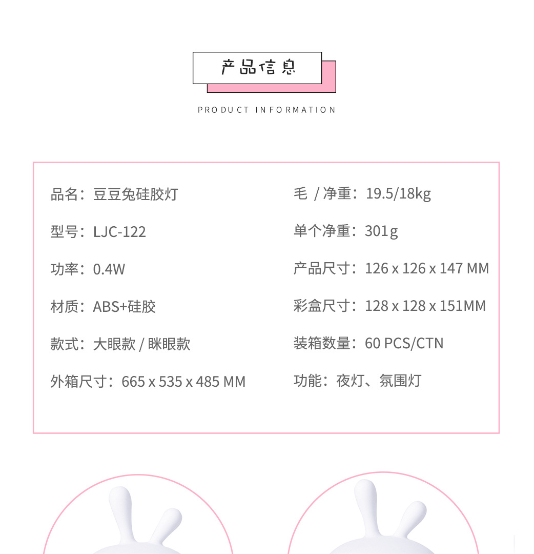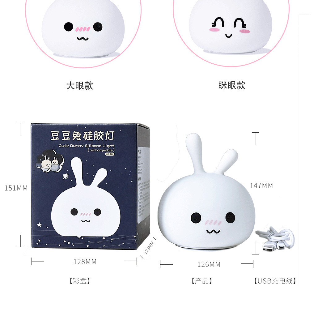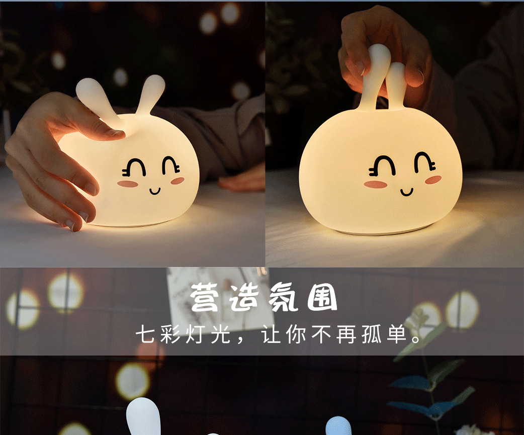 商品名称:豆豆兔硅胶灯 温馨七彩小夜灯 小礼品定制