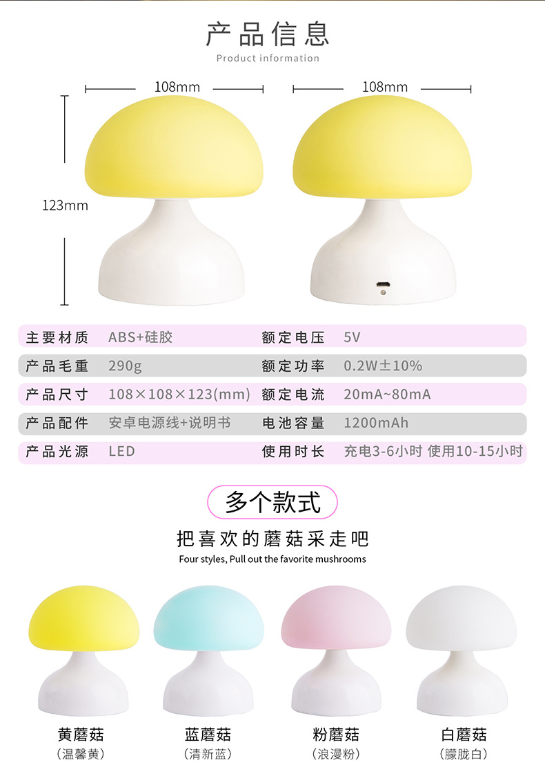 商品名称:蘑菇小夜灯硅胶遥控台灯 年会奖品