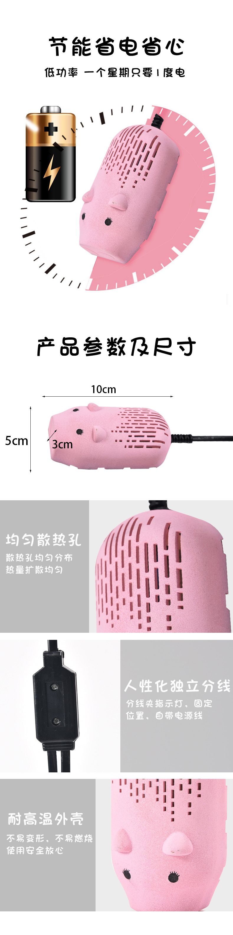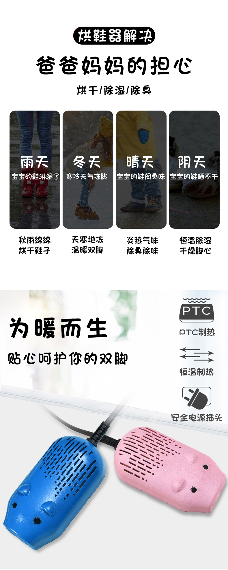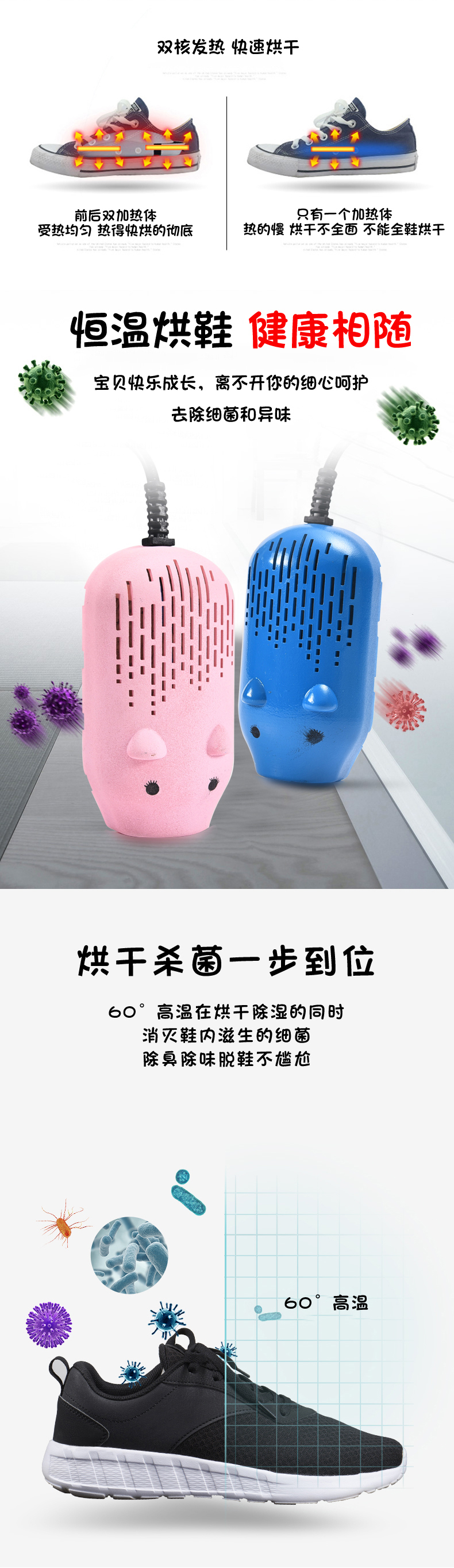 商品名称:儿童萌萌猪除臭杀菌烘鞋器 干鞋器--蓝色 学生创意小礼品