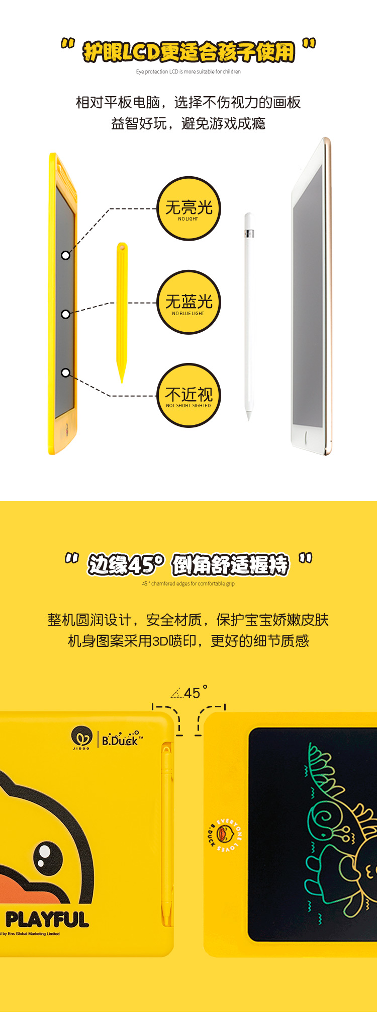 B.Duck 小黄鸭儿童手写板 彩色儿童画板 8.5寸手绘板 彩色液晶手写板 有趣的儿童节礼物