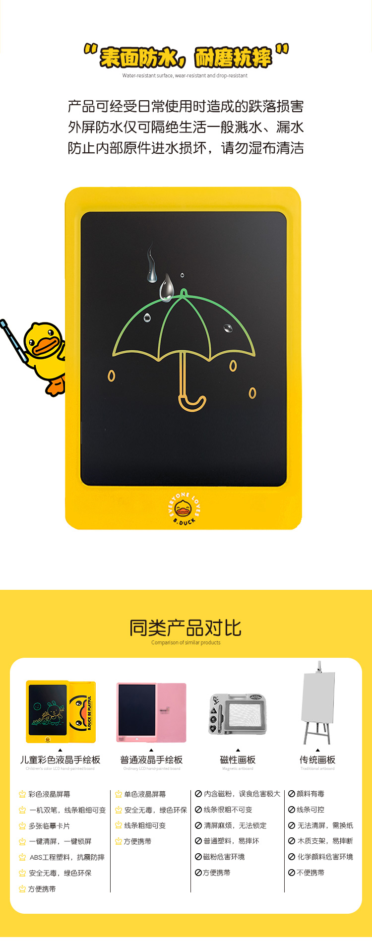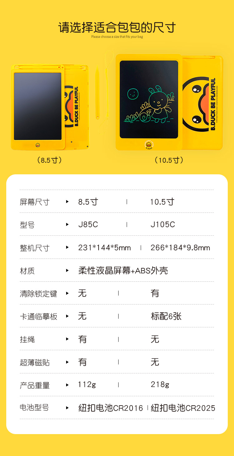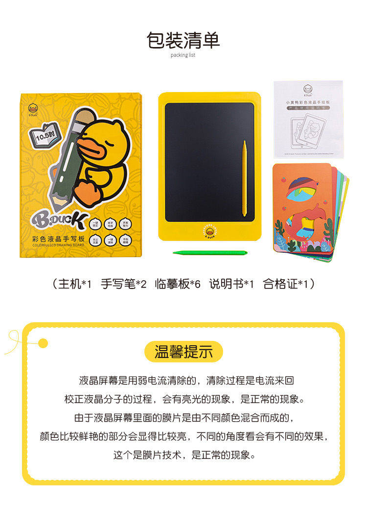 商品名称:B.Duck 小黄鸭儿童手写板 彩色儿童画板 8.5寸手绘板 彩色液晶手写板 有趣的儿童节礼物