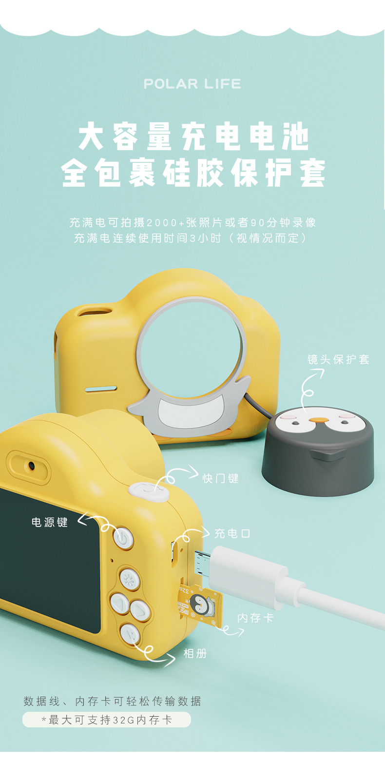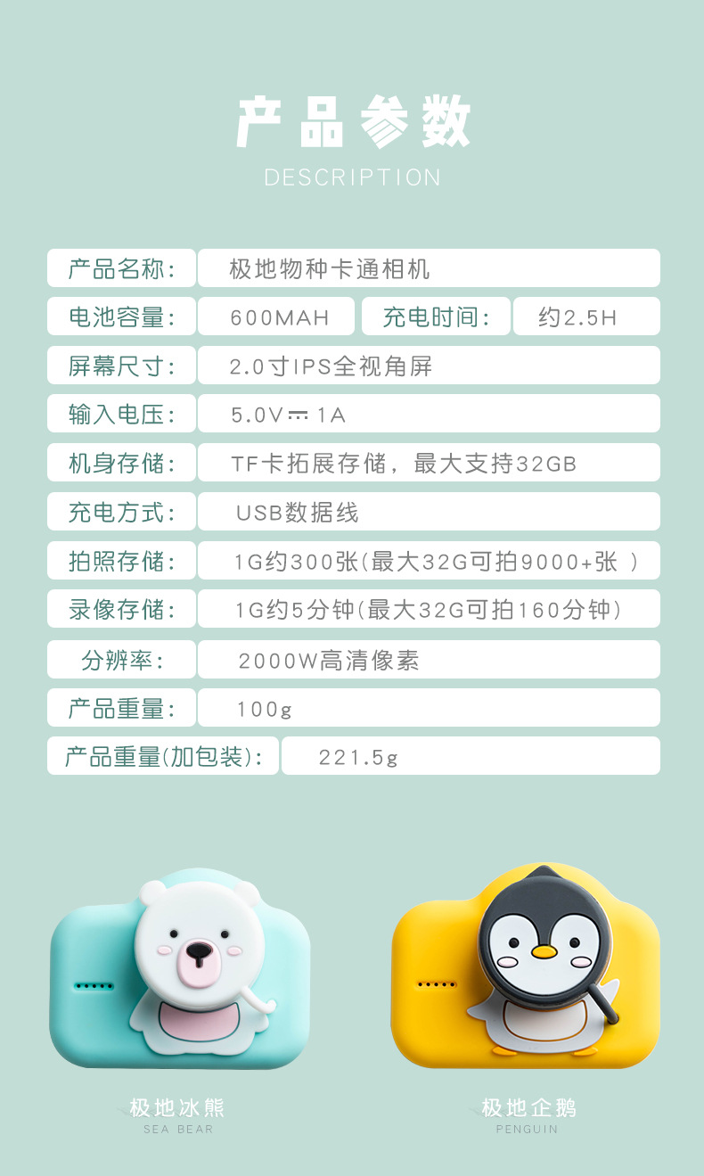 商品名称:超萌极地物种儿童相机 双摄WIFI照相机玩具 儿童节礼品