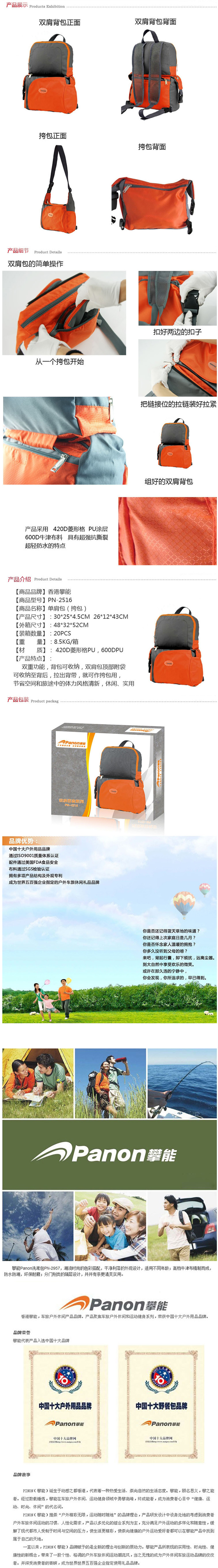 商品名称:攀能(Panon)百变折叠双肩背包 登山包 户外休闲旅行包PN-2516