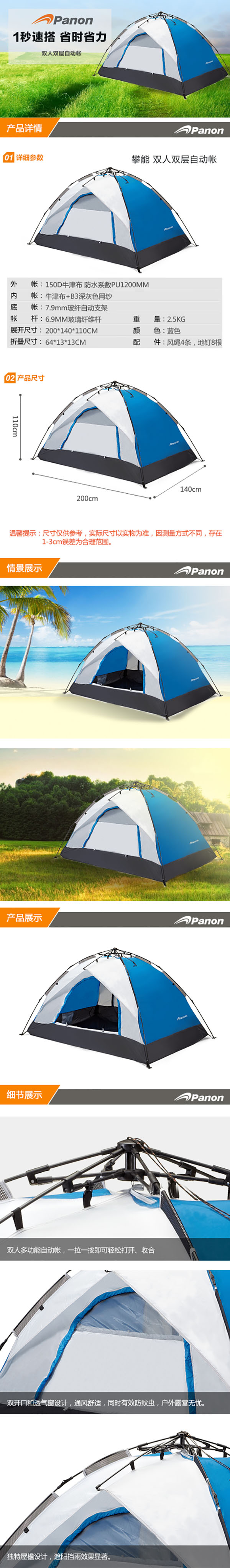 商品名称:攀能(Panon)一秒速搭双人自动帐篷PN-2260