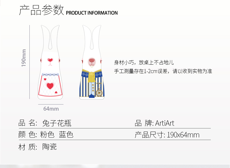 商品名称:Artiart(台湾) 创意卡通兔子花瓶趣味设计陶瓷插花器客厅装饰摆件 最吸引人的促销品