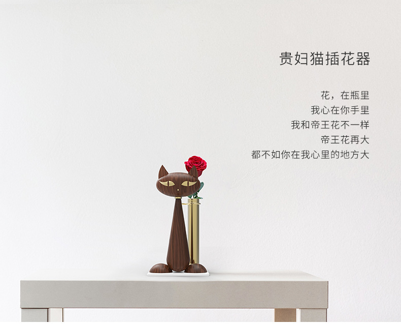 商品名称:MUSOR 贵妇猫插花器 猫咪花瓶实木干花插花家居摆件花瓶客厅装饰 工艺礼品摆件