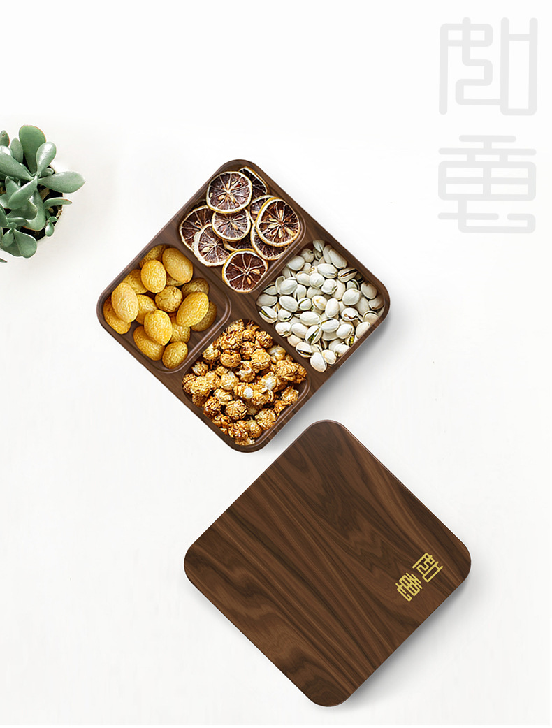 商品名称:MUSOR 实木四格果盘带盖分格干果盘收纳盘 中高端创意礼品