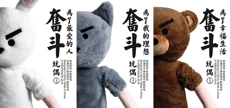 创意毛绒玩偶公仔 袖可撸奋斗公仔