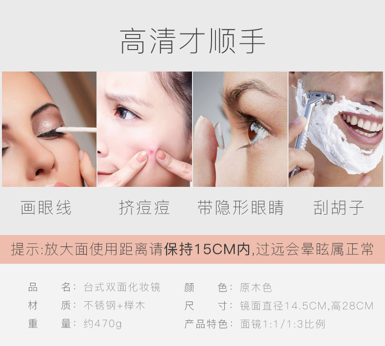 商品名称:木质台式翻转美容镜 简约设计 员工福利