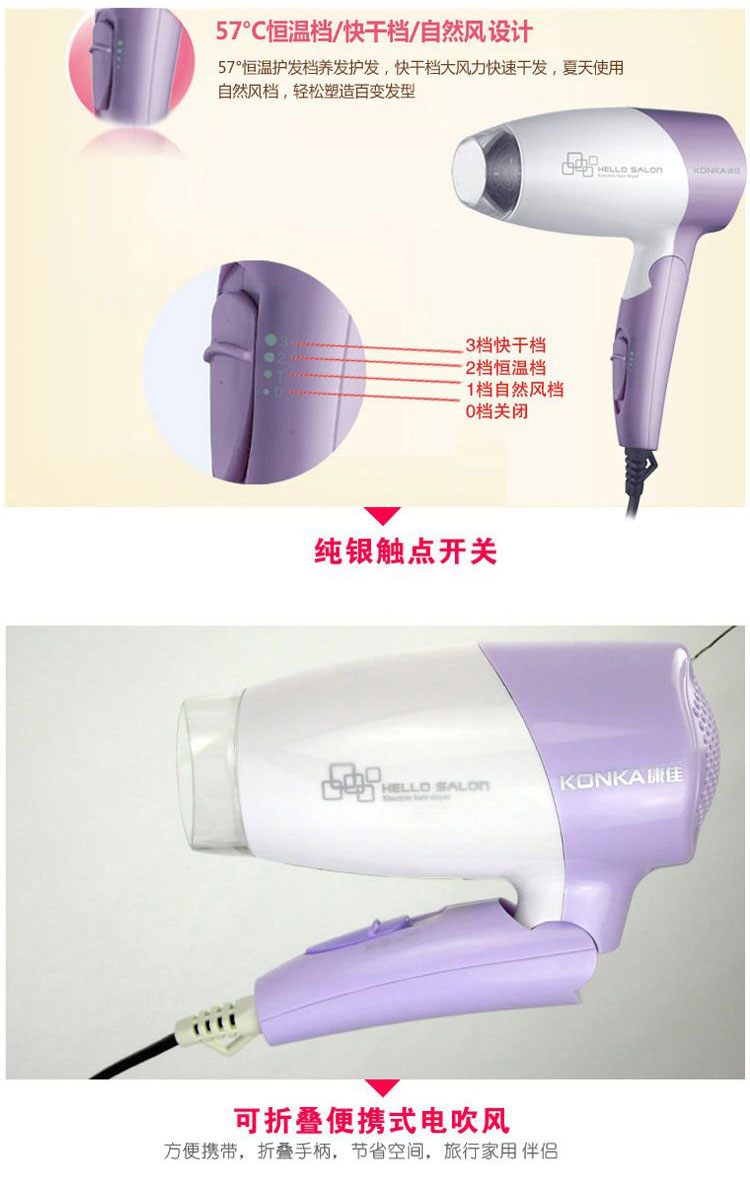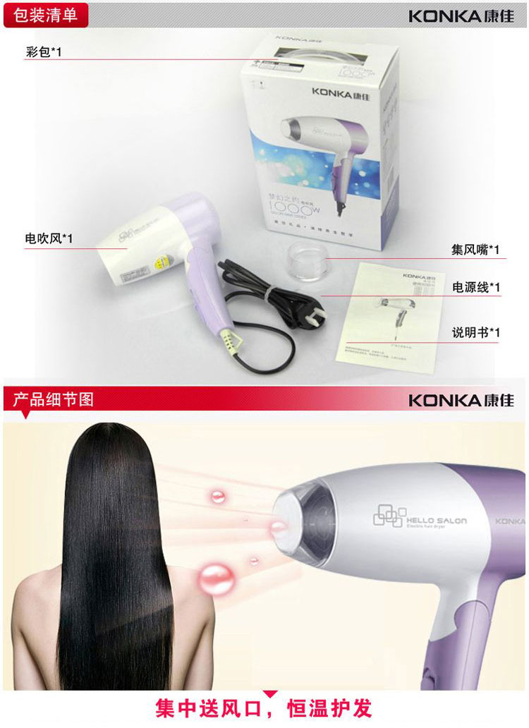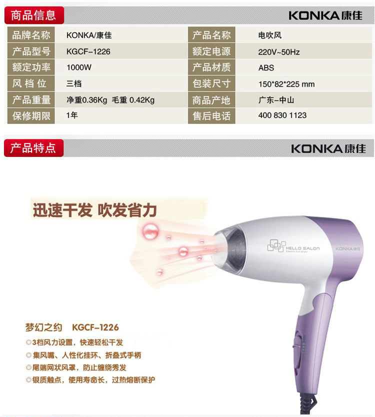 商品名称:康佳(KONKA) 梦幻之约 超静音电吹风 KGCF-1226 实用小礼品定制
