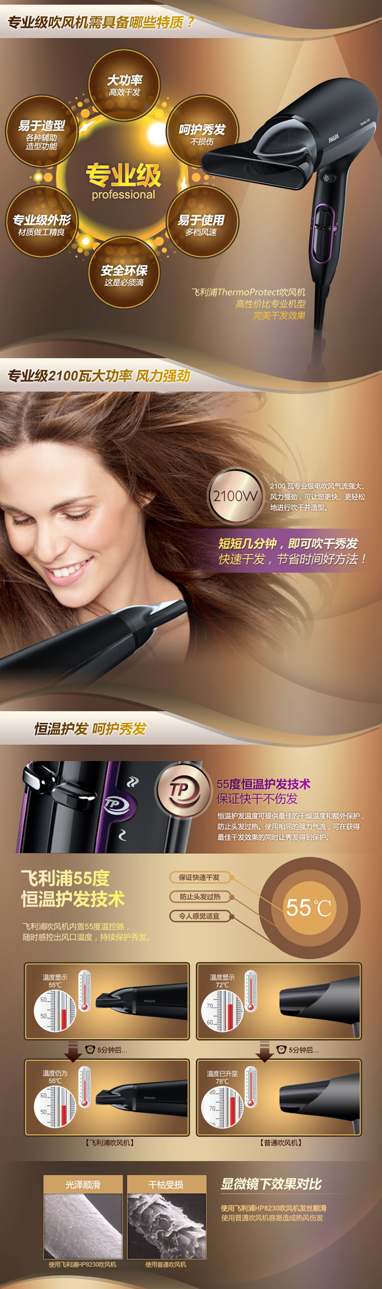 飞利浦(PHILIPS)超大功率快速干发电吹风 吹风机 风筒HP8230