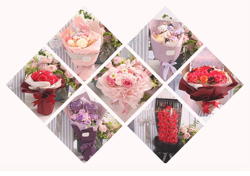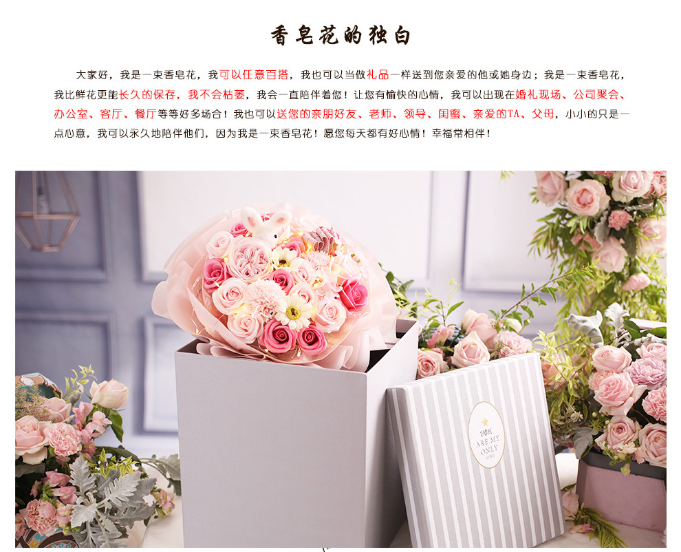 商品名称:许愿兔带灯玫瑰花束 21朵混搭兔子款香皂花礼盒 春天送什么礼品