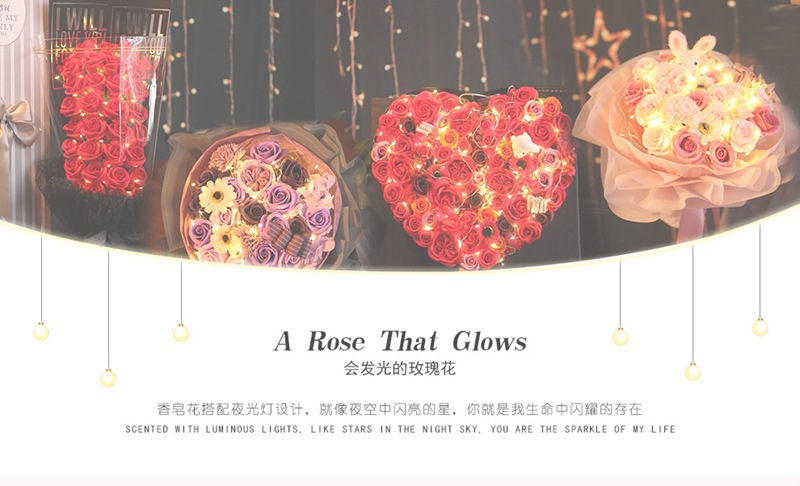 许愿兔带灯玫瑰花束 21朵混搭兔子款香皂花礼盒 春天送什么礼品