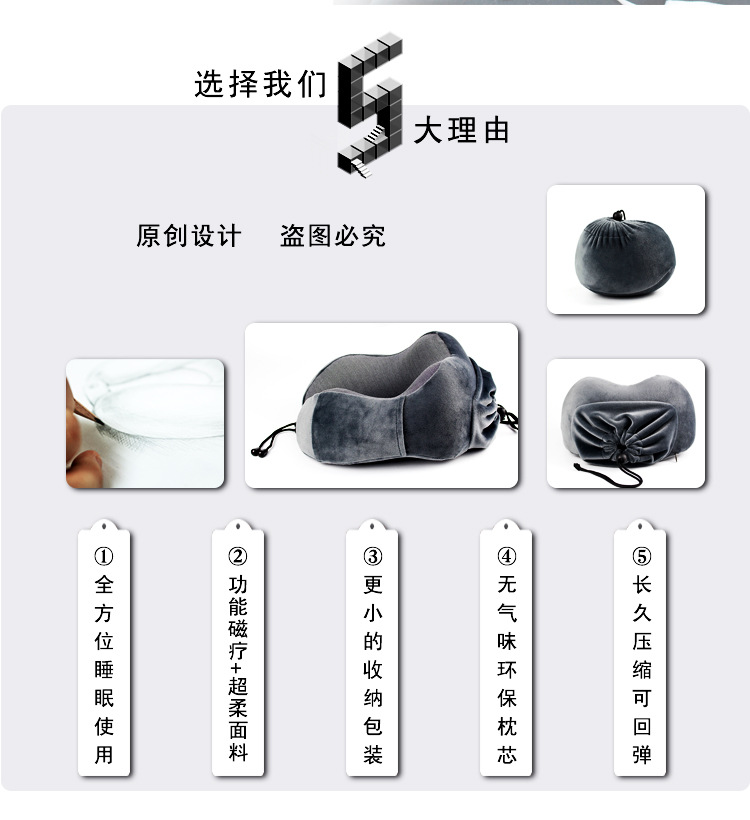商品名称:自带收纳袋功能慢回弹太空枕 记忆枕 U型枕定制 创意礼品 送女生