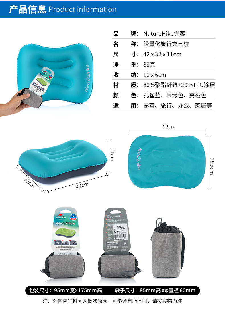 商品名称:Naturehike充气枕头午睡小枕头办公室午睡枕 员工福利
