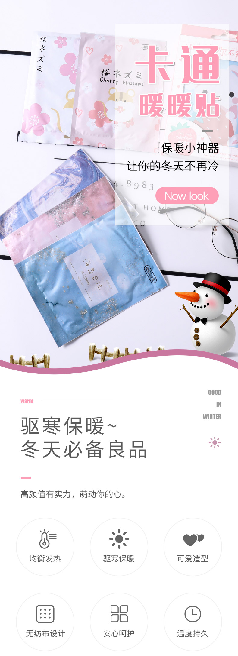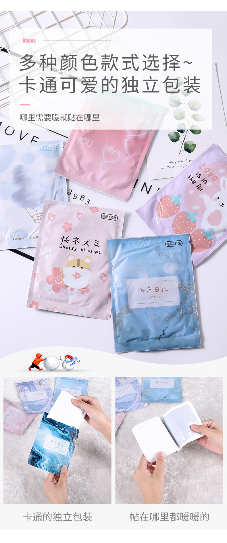 商品名称:沃姆卡通图案便携暖宝宝 保暖贴5片盒装--棉花糖