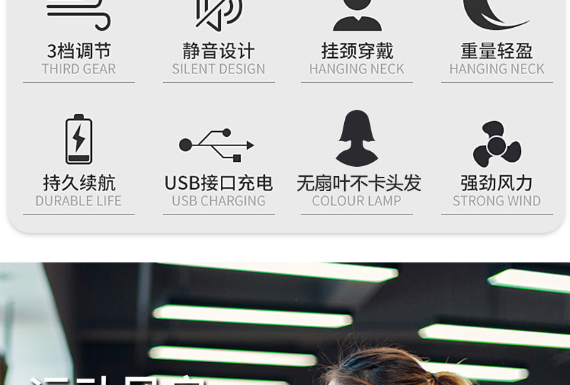 商品名称:运动挂脖无叶风扇 懒人迷你折叠充电风扇 夏天送什么赠品好