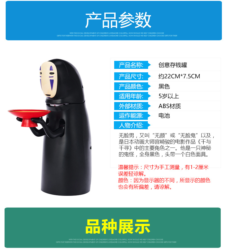 商品名称:抖音同款 创意无脸男存钱罐 会吃硬币会打嗝 创意小礼品