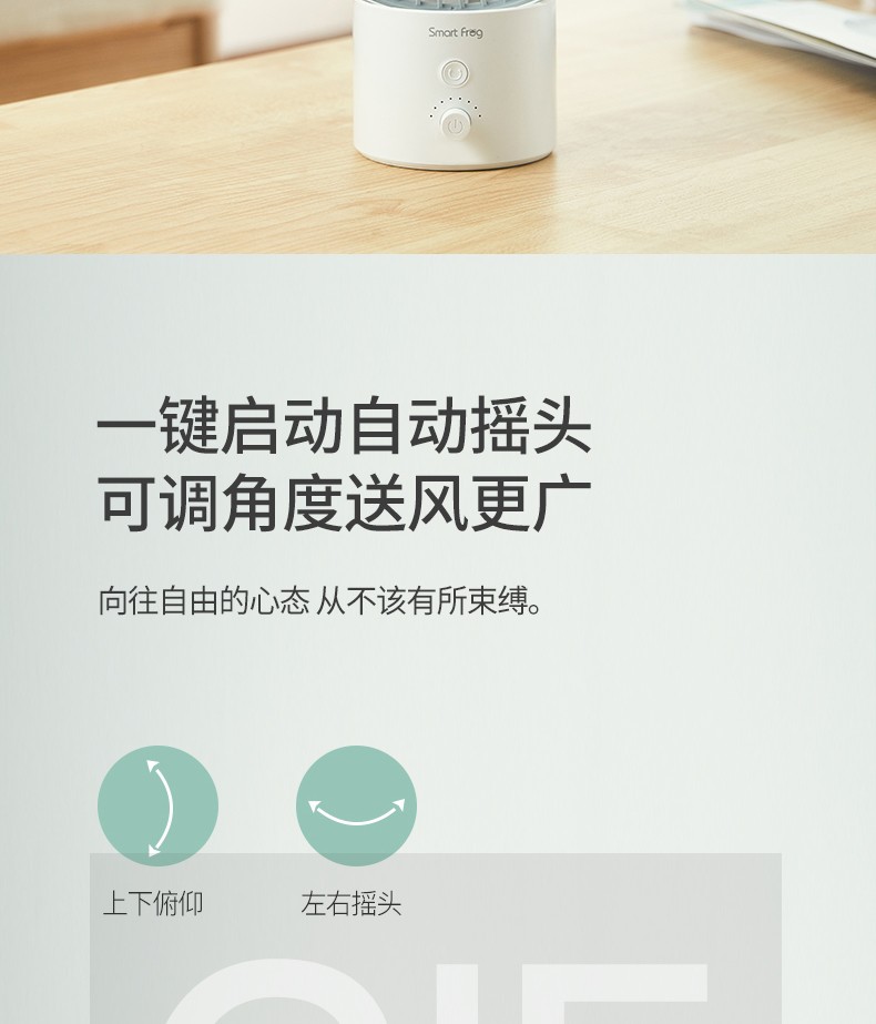 商品名称:Smart Frog 北欧简约小台扇 2020iF设计奖 USB充电空气循环风扇 活动奖品