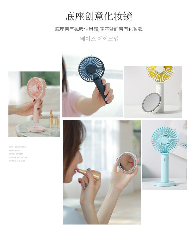 商品名称:手持化妆镜风扇 USB充电户外便捷迷你风扇 女生喜欢什么实用礼品