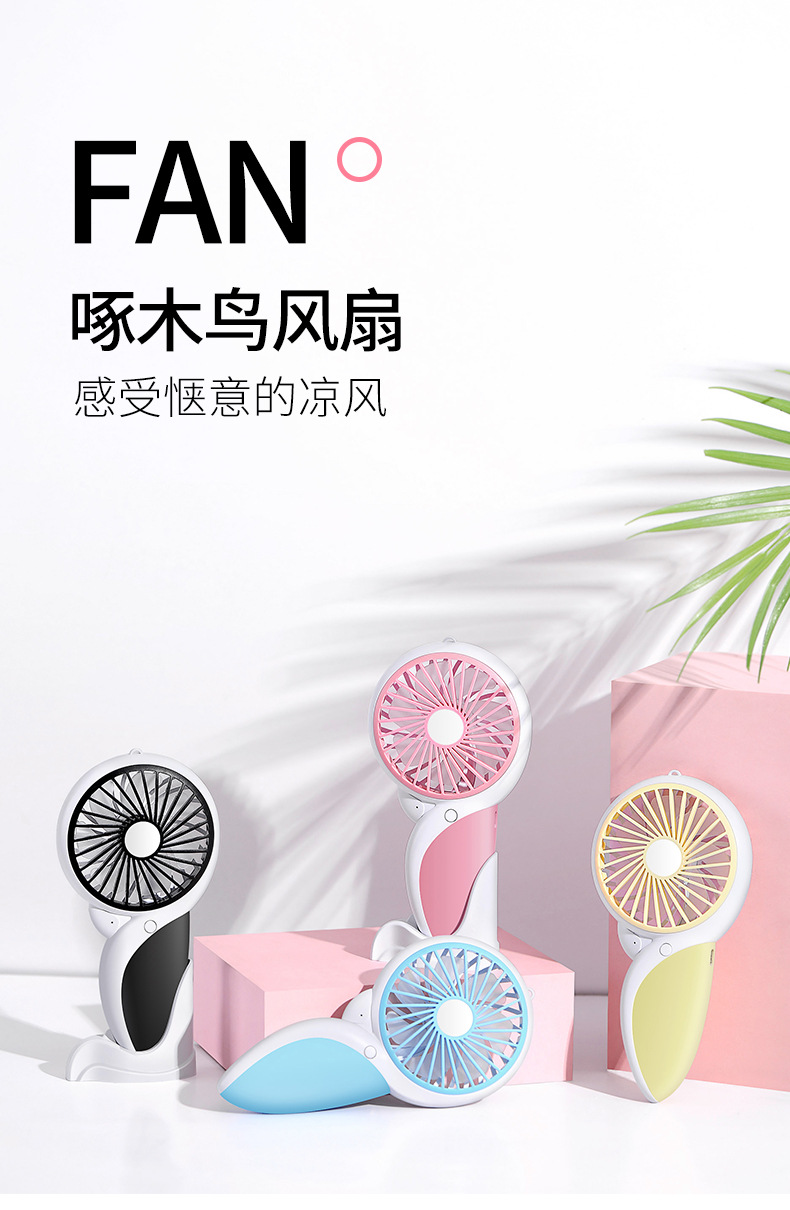 商品名称:可爱啄木鸟造型小风扇 七彩灯光充电迷你口袋风扇 便携式静音风扇 生活小礼品